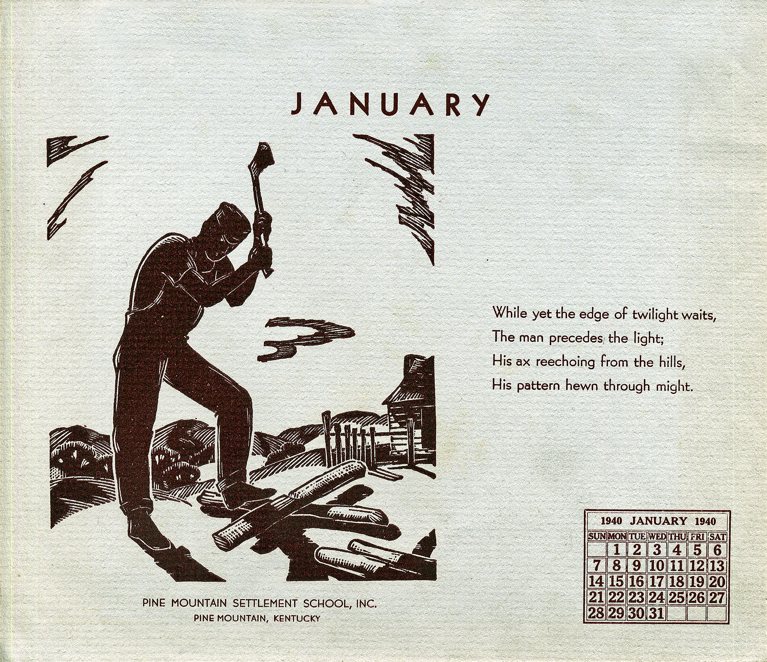 - 1940 Calendar. Linoleum prints by John Spelman III. January
