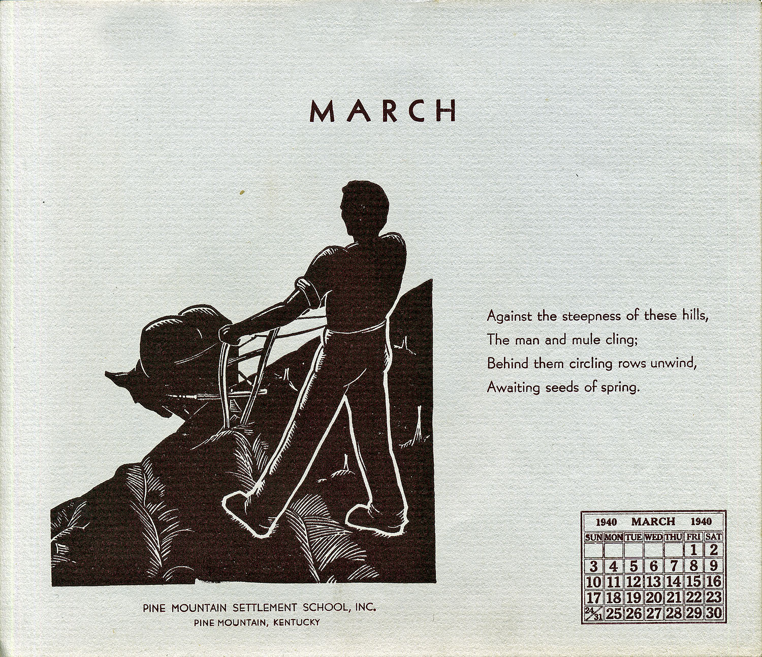 - 1940 Calendar. Linoleum prints by John Spelman III. March