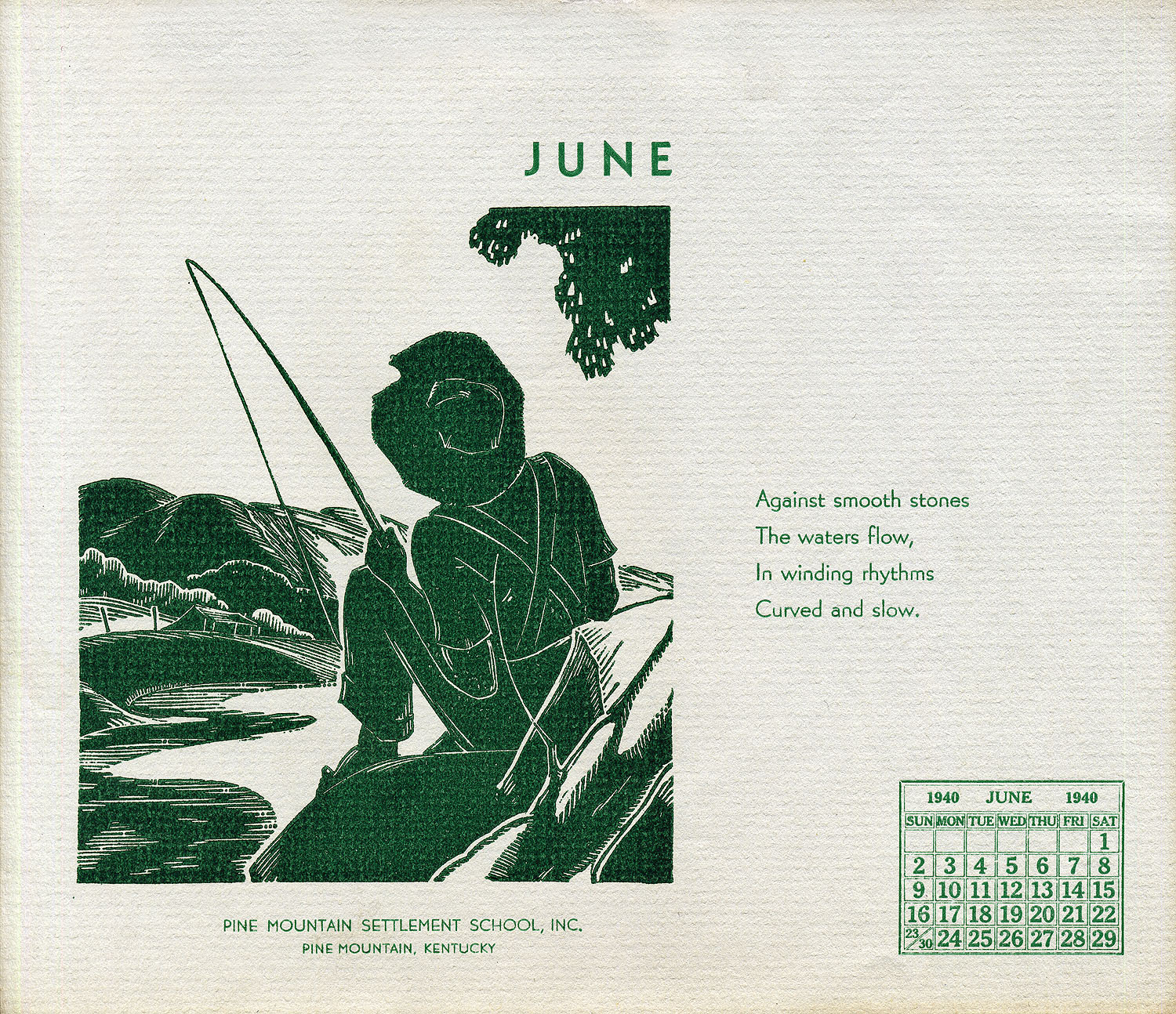 - 1940 Calendar. Linoleum prints by John Spelman III. June