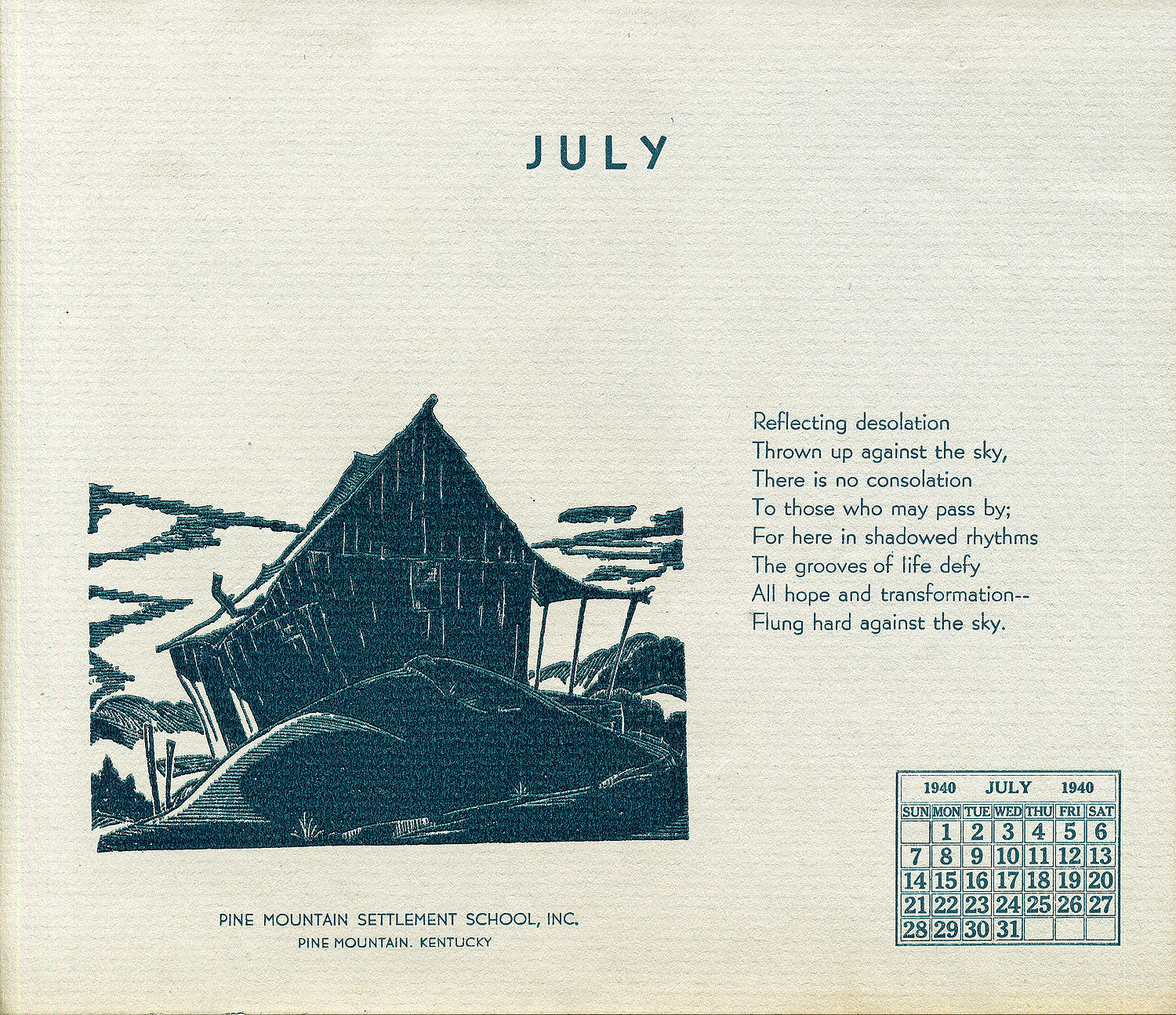 - 1940 Calendar. Linoleum prints by John SpelmaJn III. July