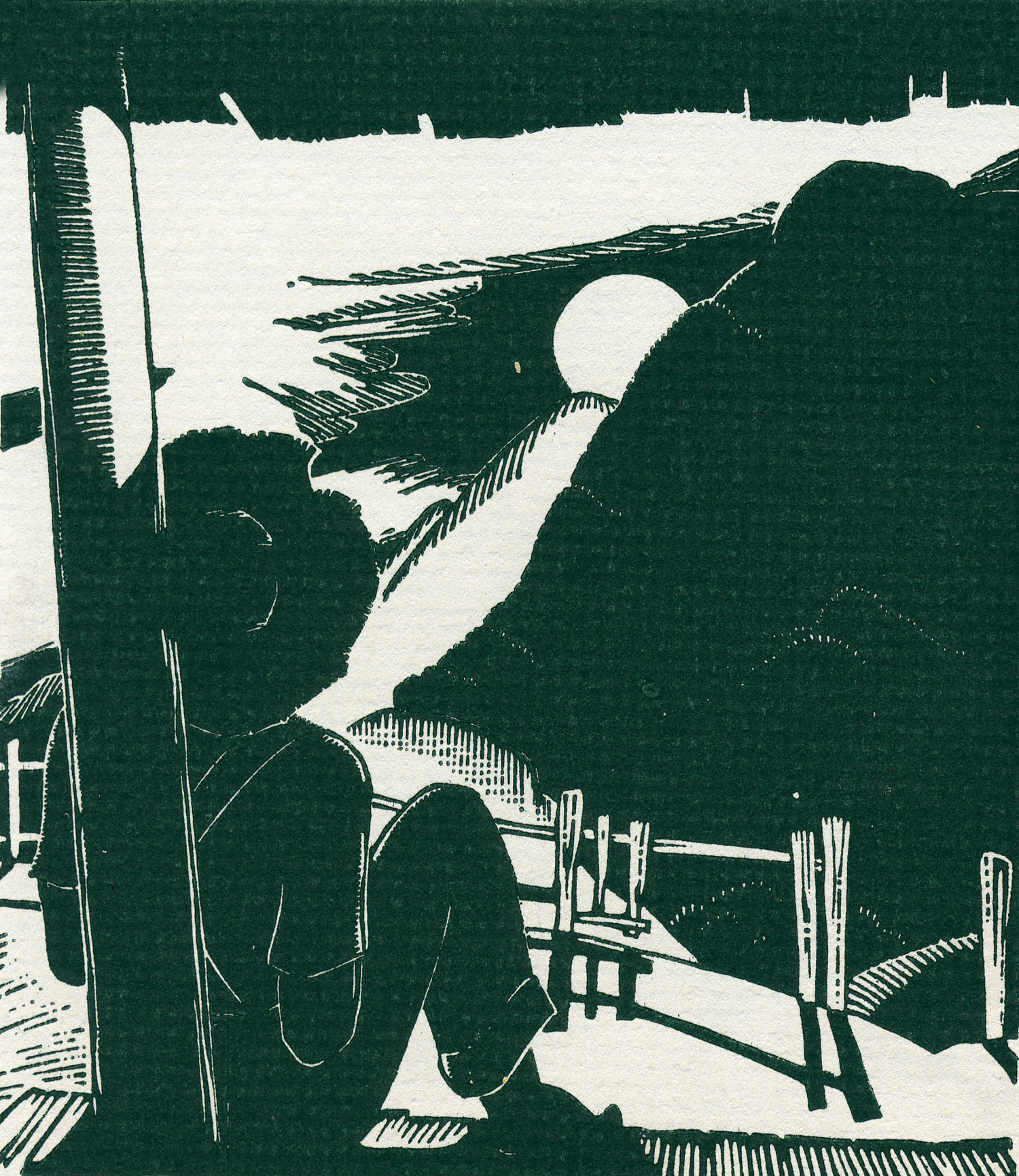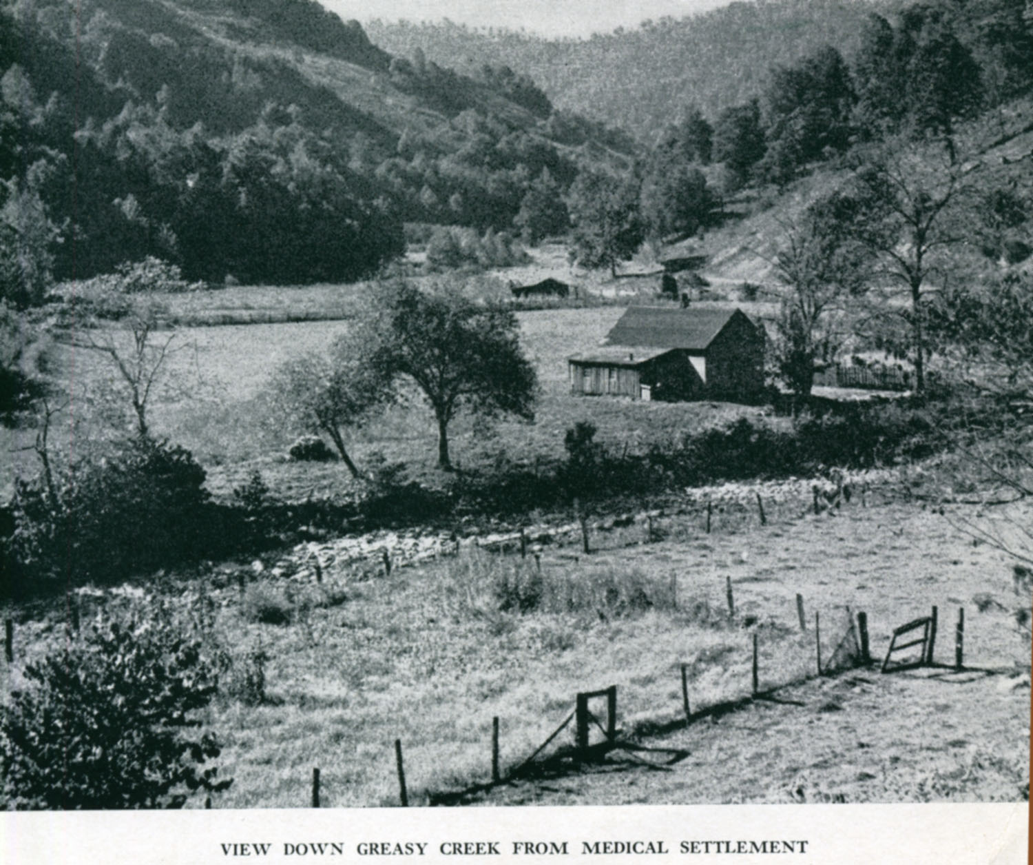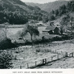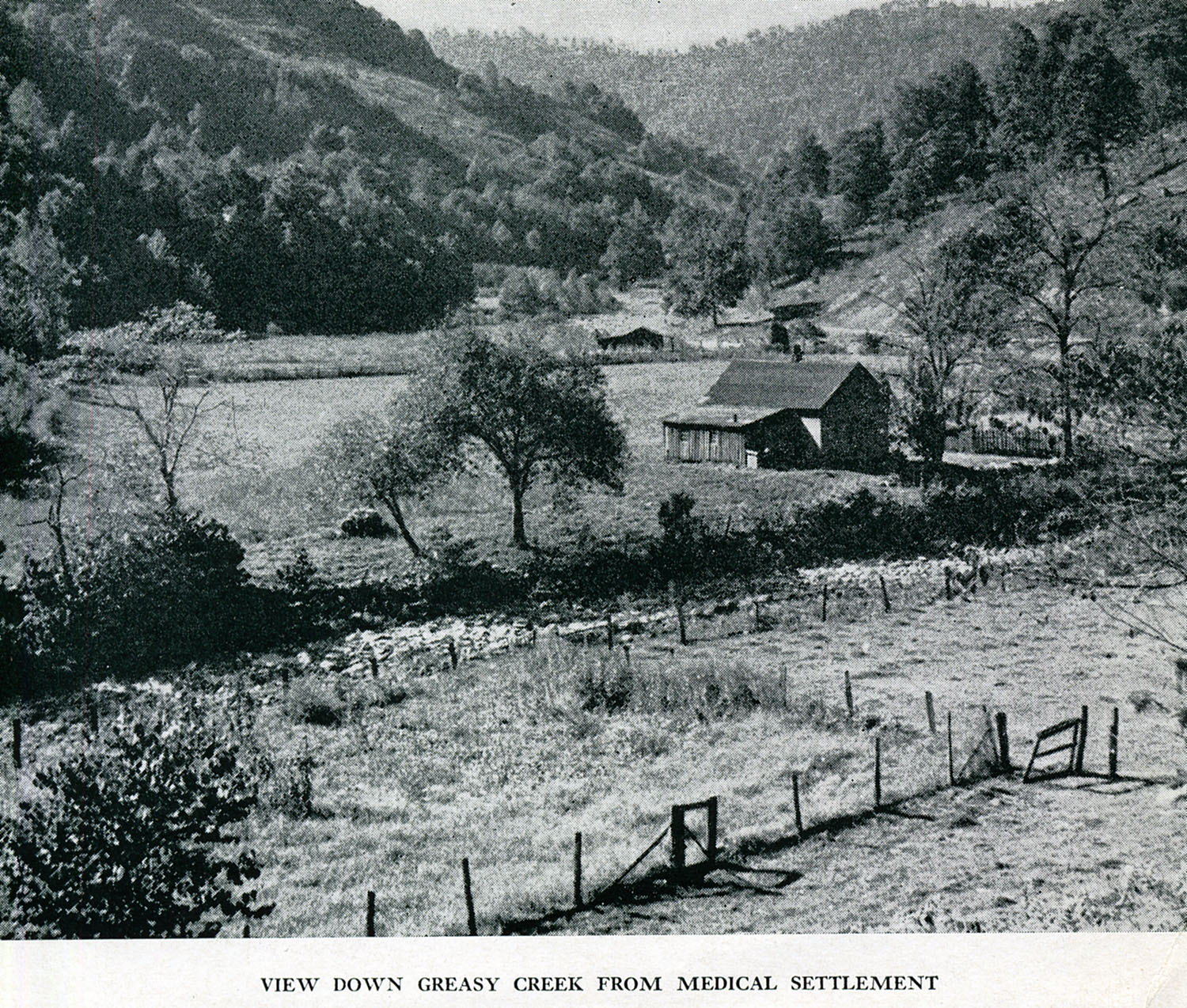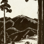 - 1940 Calendar. Linoleum prints by John Spelman III. View down greasy creek from medical settlement .
