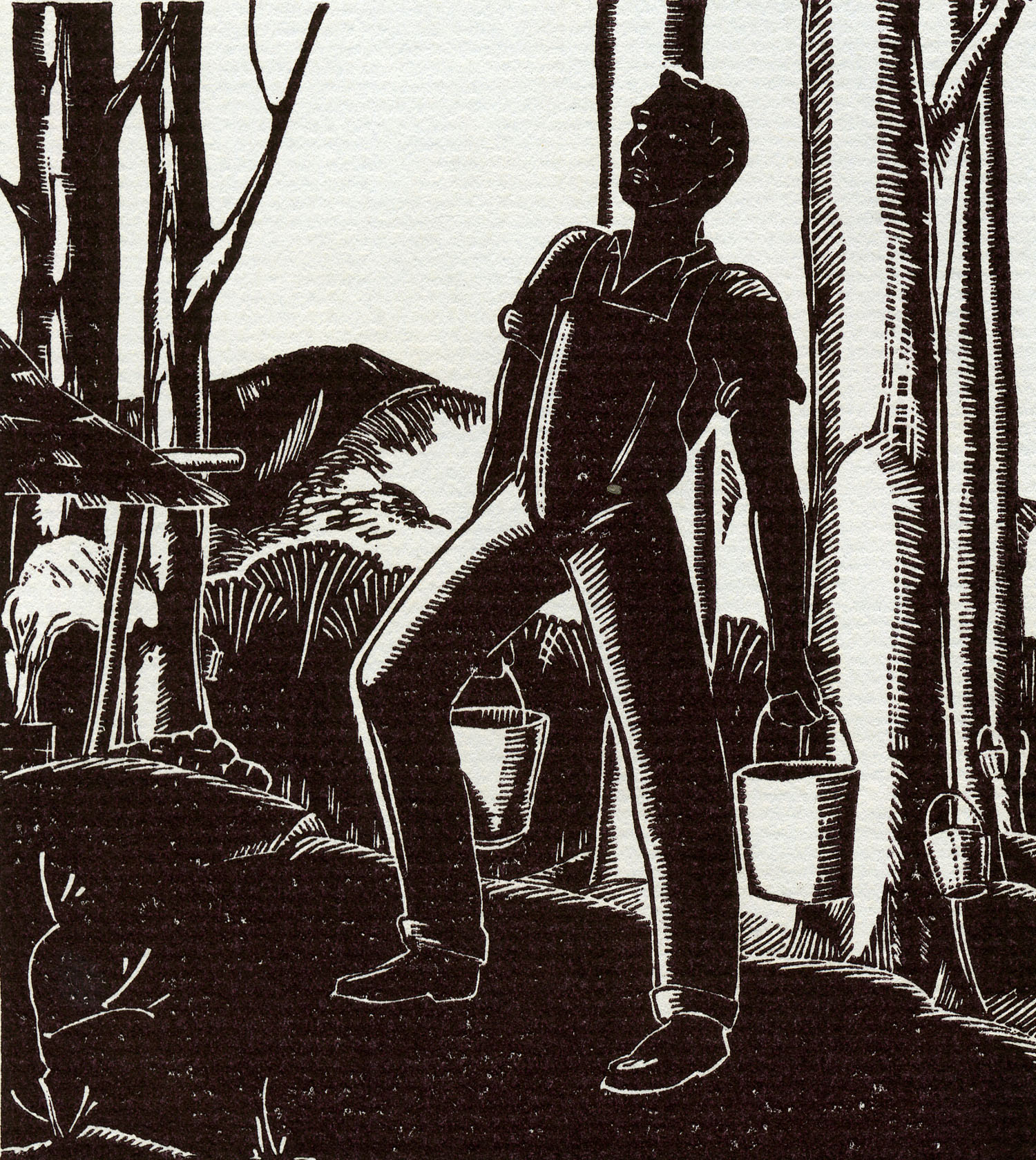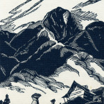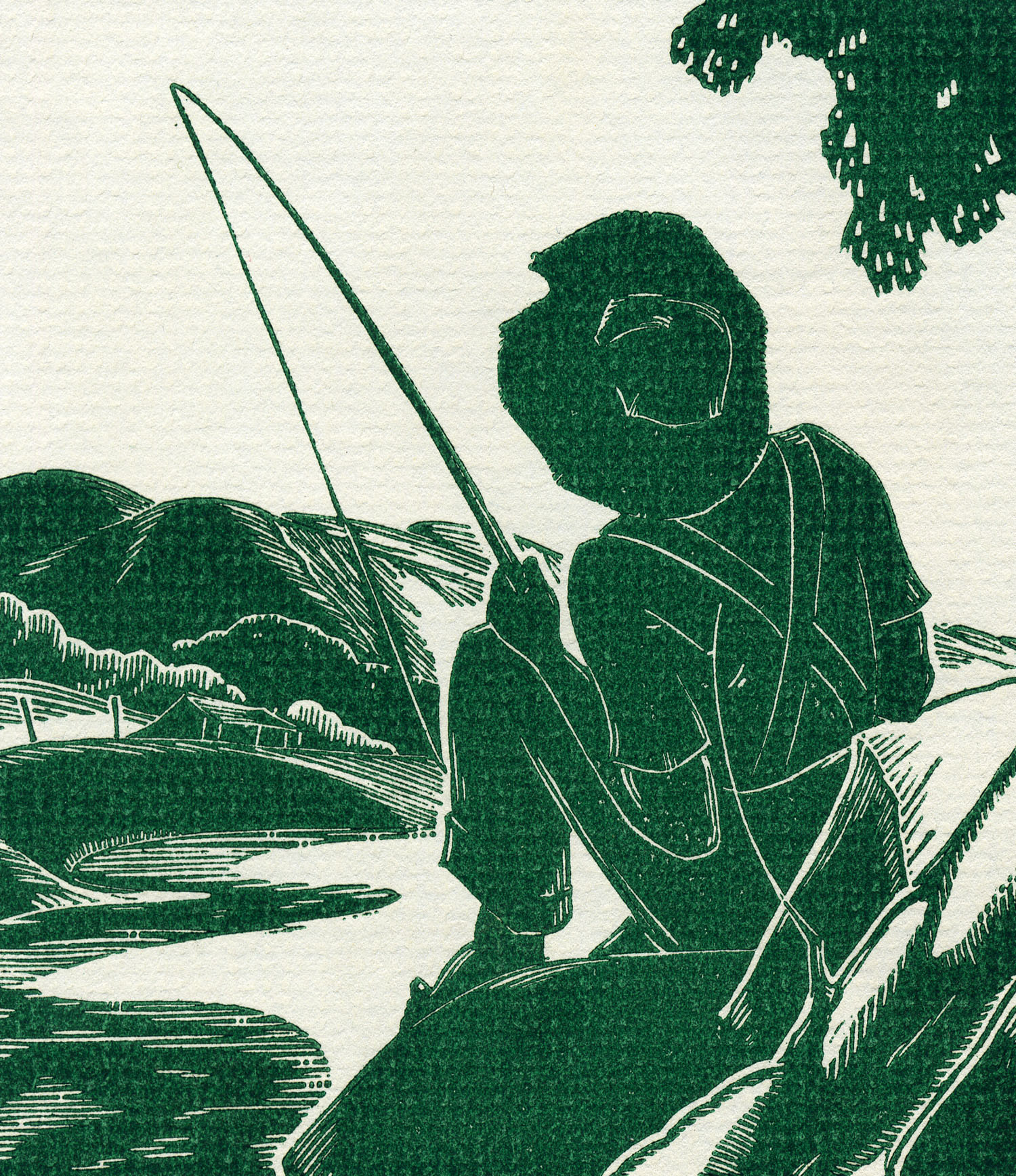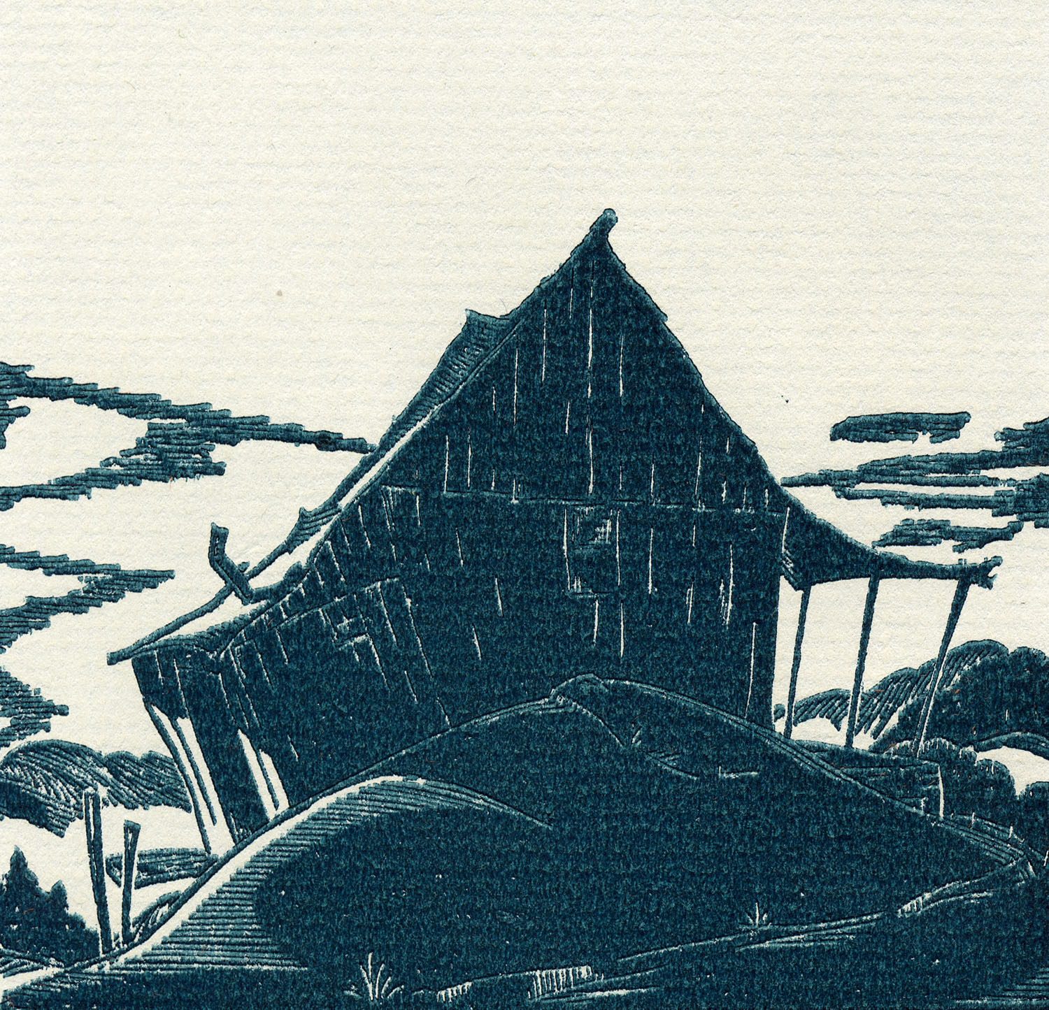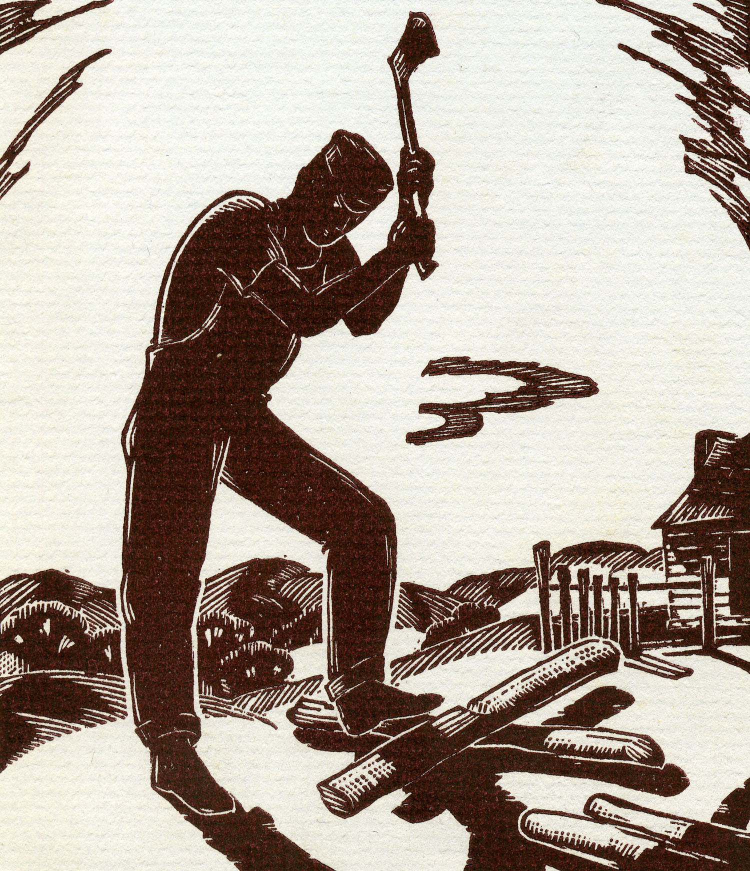 - 1940 Calendar. Linoleum prints by John Spelman III. View down greasy creek from medical settlement .