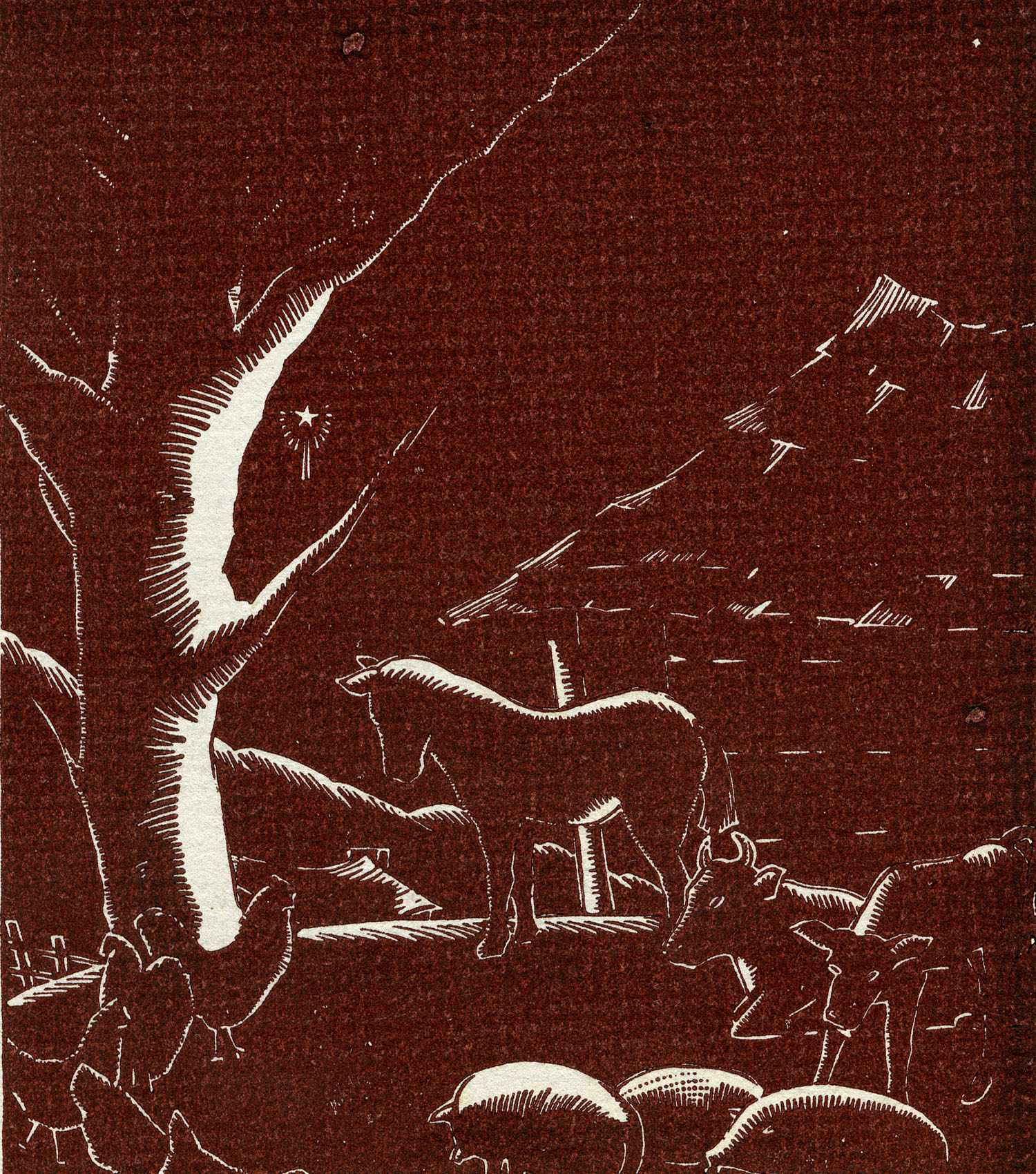 - 1940 Calendar. Linoleum prints by John Spelman III. Nyene Gertrude and Primrose purchased with proceeds from last year’s calendar