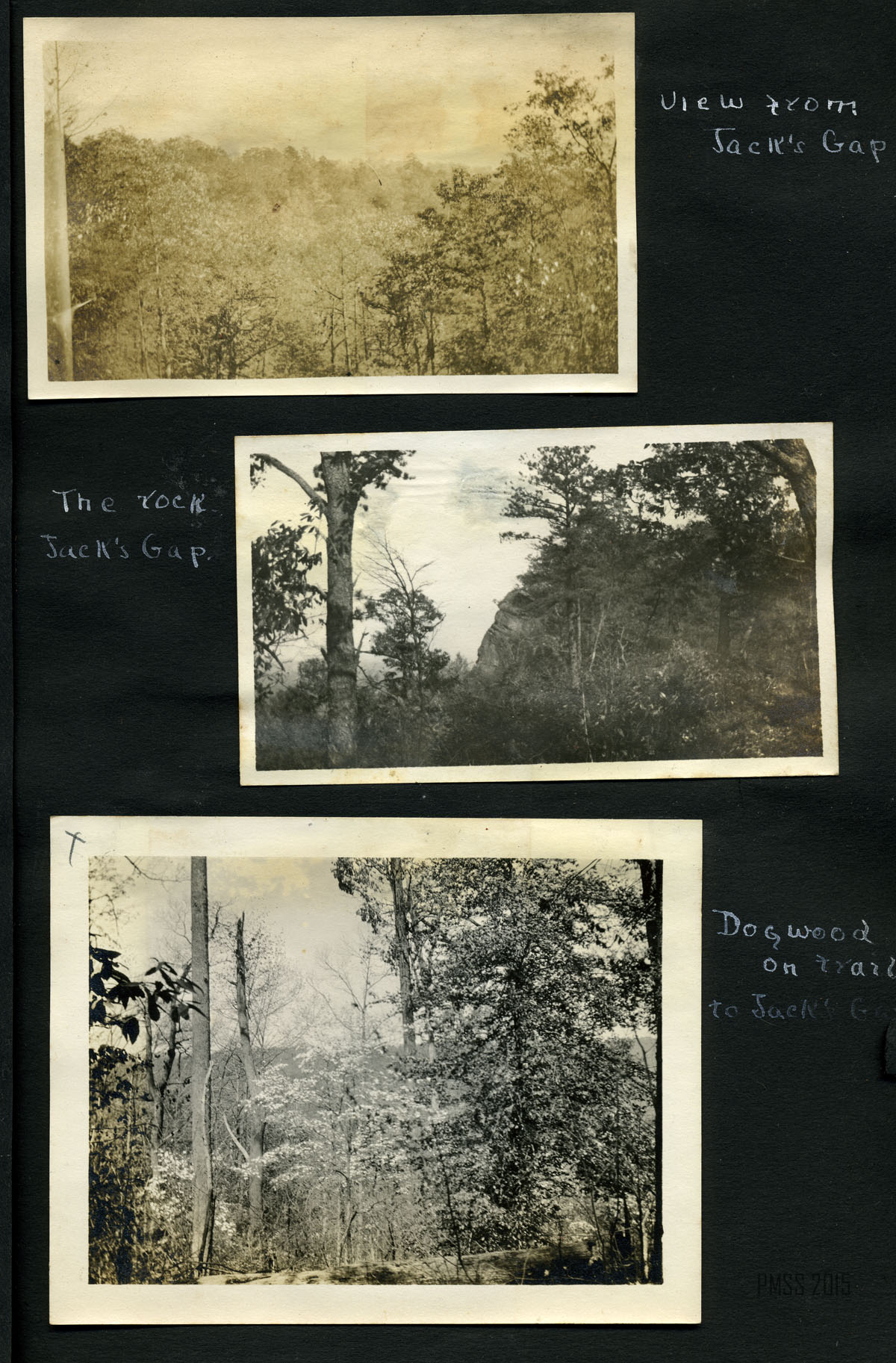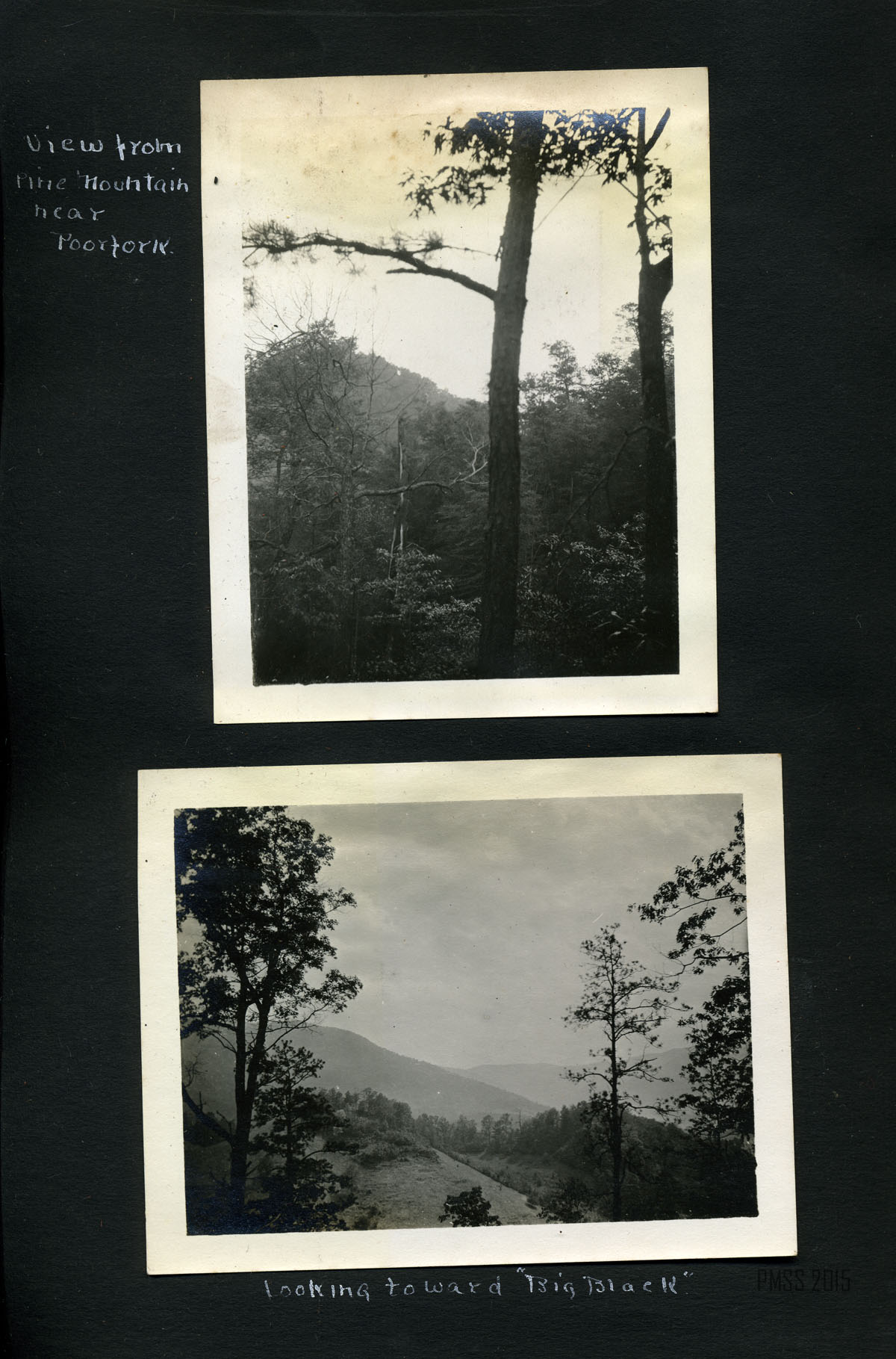062a View from the mountain near Poorfork. ; 062b Looking toward “Big Black.” [Mountain landscape.] ; 063a Rock near the Raven’s nest. [Tree at right in front of rock.]