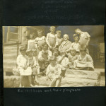 068b The Far House. [Close up- shutters and doors open.] ; 069a Bobby and Melinda. [Two young children sitting on steps on Old Log House, rocking chair on porch.] ; 069b Some of the Far House children. [Six children on the porch of Far House.] ; 070a Far House Living Room – May Ritchie. [Young woman sitting in chair at left with animal in lap, round table in center, doors at right.] ; 070b Far House. ; 071a [Five young boys: one standing on left, three by a sawhorse, and one squatting in background.] ; 071b Far House – Back. ; 071c School in the Lodge. [Three young men and three young women sitting in wooden chairs, five have books, stove? in middle of room.] ; 072a [Rebel’s Rock on Laden Trail, several horses? and man at right.] ; 072b [Burkham School 2.] ; 073a Barton, Munroe, Chester, John [Four young boys: two on large log, one behind the log, one sitting on the ground in front of the log.] ; 073b Far House Children. [Six young children sitting on the ground, third from left holding a cat. Fence in background.] ; 074a Will Cornett and Antie. [Young man sitting on a log, dog on his left side.] ; 074b Old Log House.