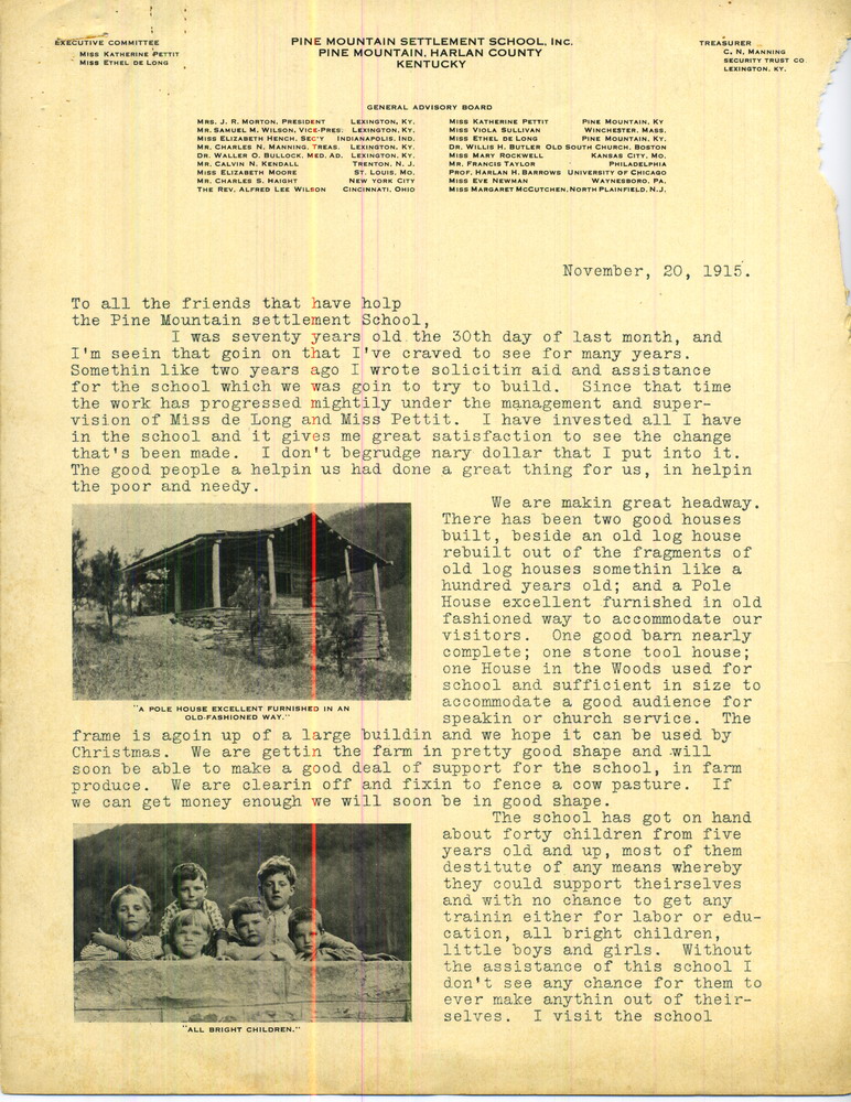 To all the friends that have holp (sic) the Pine Mountain Settlement School,