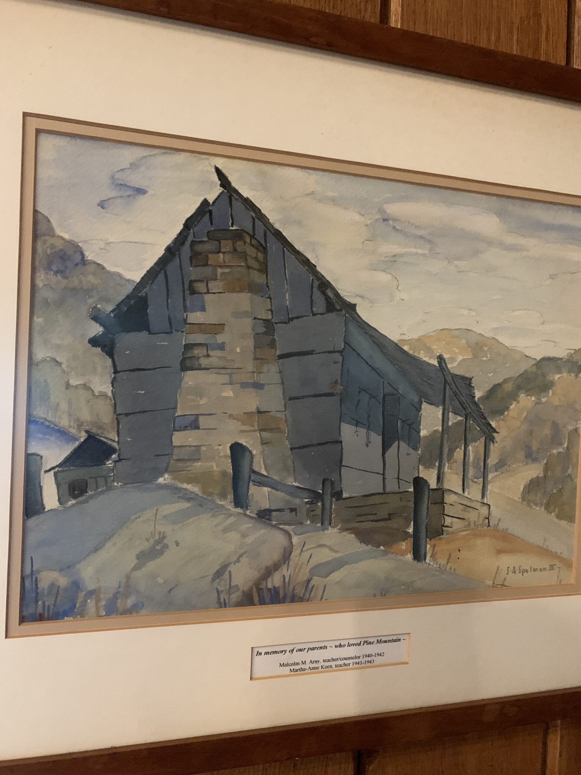 The following watercolor painting by John A.Spelman III was donated by the Arny children in memory of their parents. It hangs in the main living room of Laurel House II at Pine Mountain Settlement School.