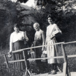 - Maya Sudo Album: Three women standing on bridge. Center woman is probably Dr. Little at PMSS. [sudo_album_017b_mod.jpg]