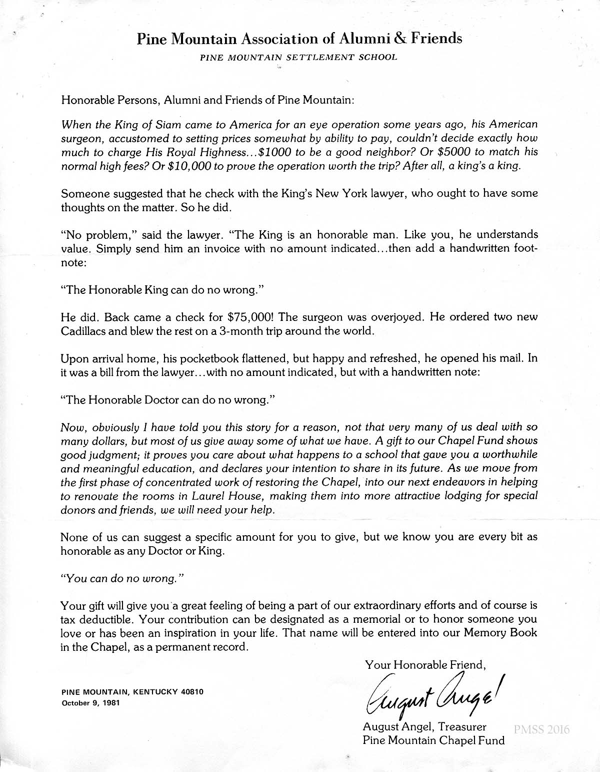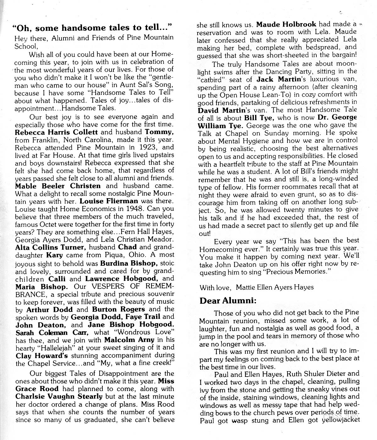 Honorable Persons, Alumni and Friends of Pine Mountain: