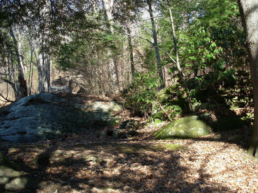 - Country Cottage (Practice House, Model Home). Rocky terrain behind house. [HW_rocks_behind_country_cottage.jpg]