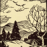 - 1938 Calendar Linoleum block print by John Spelman III. House [Perhaps Practice House, west flank [?] at PMSS.