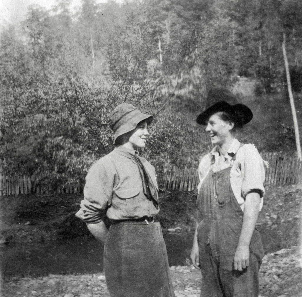 (October 21, 1914) This morning [Miss Ethel McCullough], Miss Pettit and Miss Newman started on a twenty mile walking trip down “Greasy” expecting to be gone until the end of the week. They were pictures in their khaki skirts and middies, with their clothes slung over their back in some fetching pack.