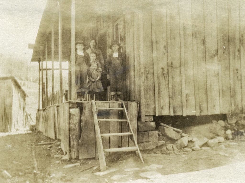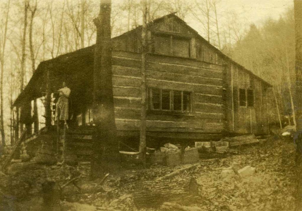 Line Fork Settlement. Front and East view. Miss Dennis on porch.