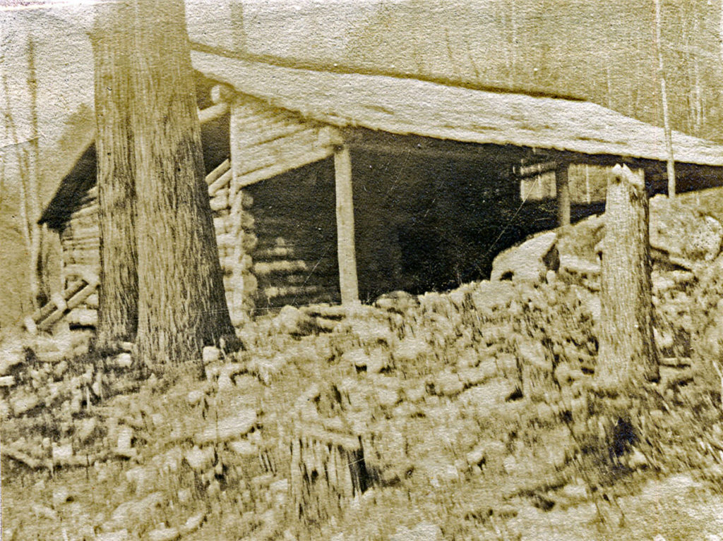 For six or seven days the patient stayed at the store, as he lived some distance up the mountain side. Dressings were changed twice a day, and each time, more shot would be removed. When time came for him to go home, several of the boys cut two tameracks, cleaned the trunks, and made a stretcher frmo a quilt and coats: they then carried him up the mountain to his cabin where he was confined to his cabin and bed for several weeks. Between his banjo and book and magazines from the settlement, time passed quickly until he was up and about again.