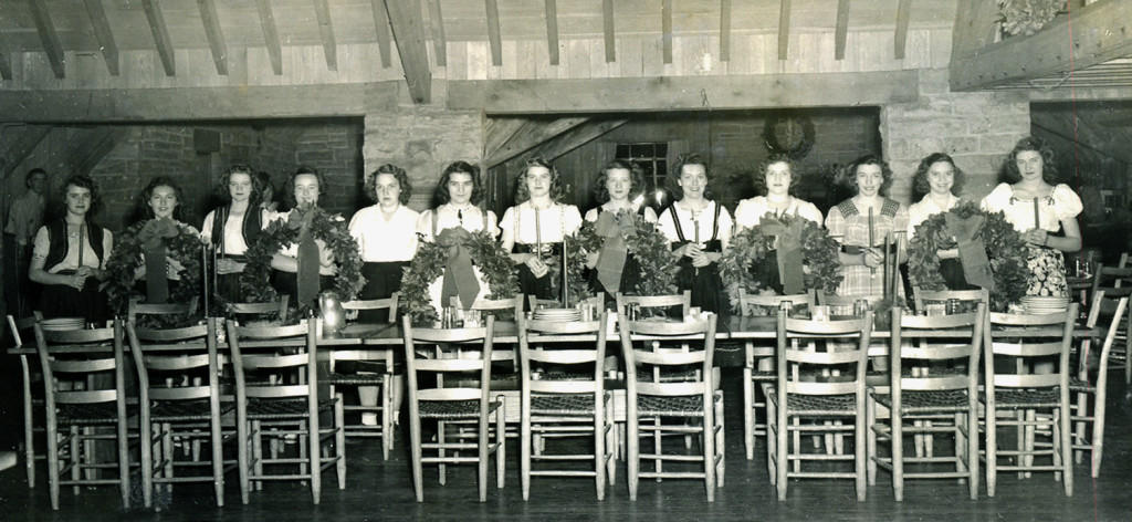 Clella Sergent is fifth from the left in this festive group photograph taken during the Christmas celebration cycle in Laurel House II.