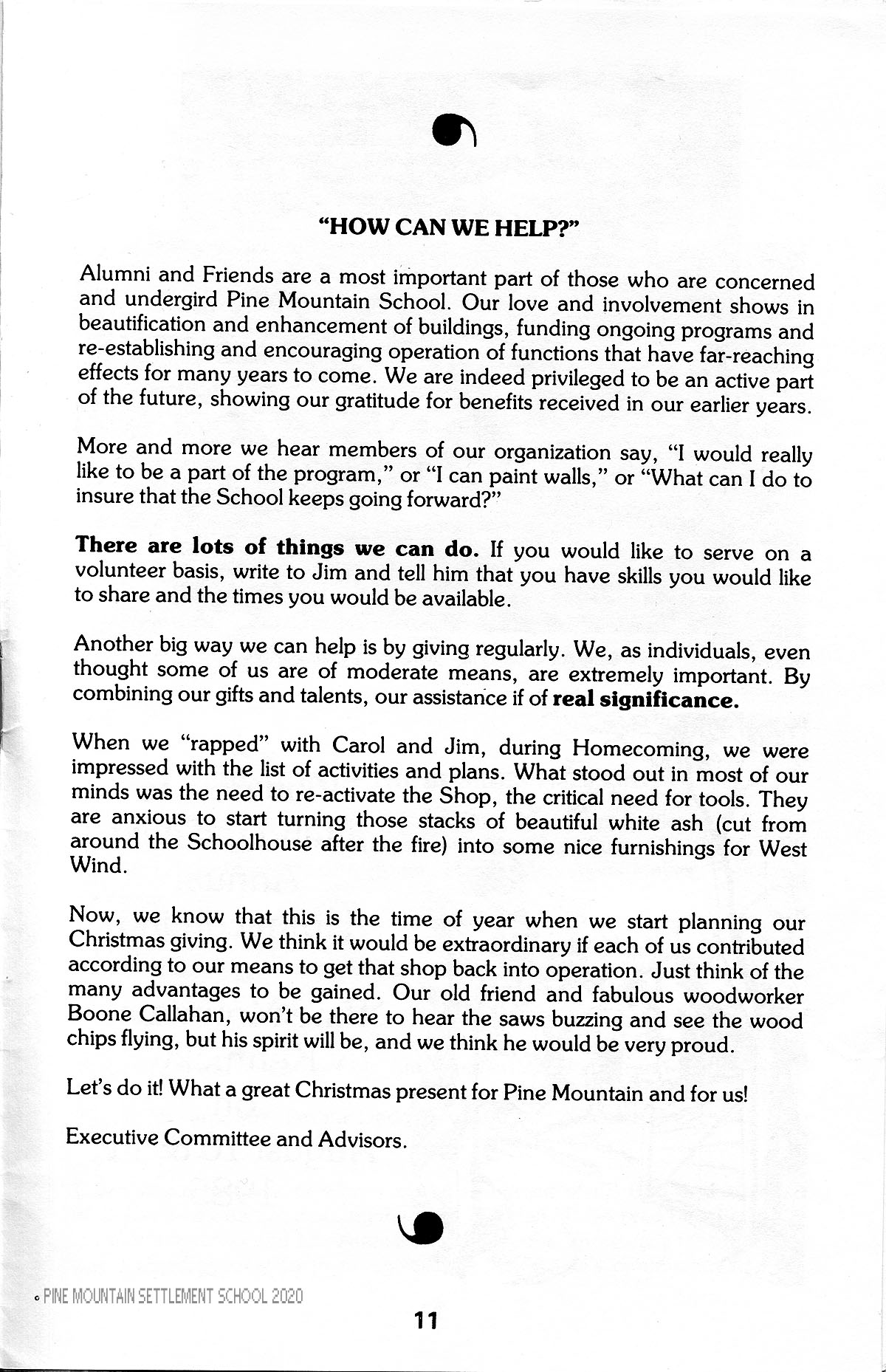 Pine Mountain School Association of Alumni and Friends