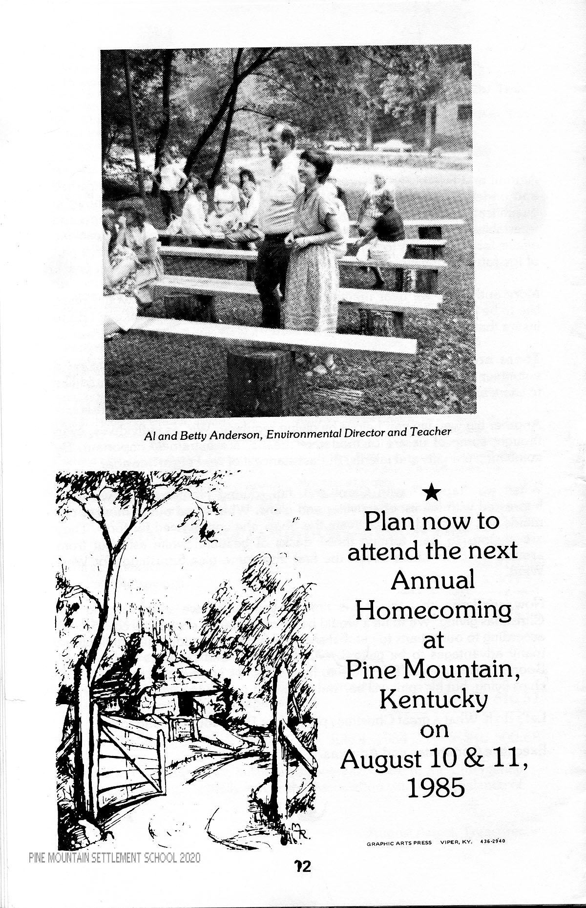 TAGS: Alumni Relations 1984 Newsletter, Pine Mountain Association of Alumni & Friends, alumni homecoming meeting, “Earn and Learn” scholarships, PMSS Octet, Arthur Dodd, Ruth Shuler Dieter, Chapel marriage, country dancing revival