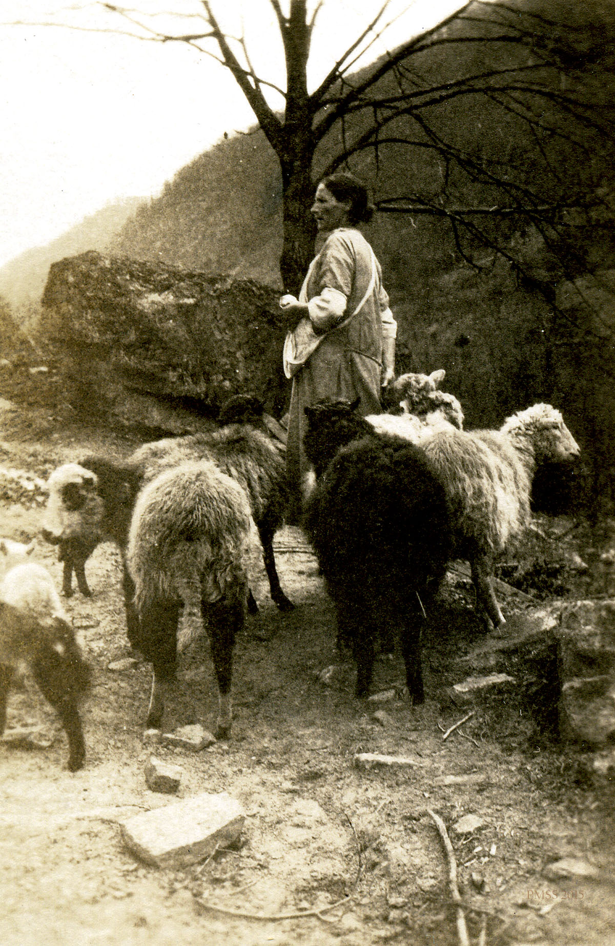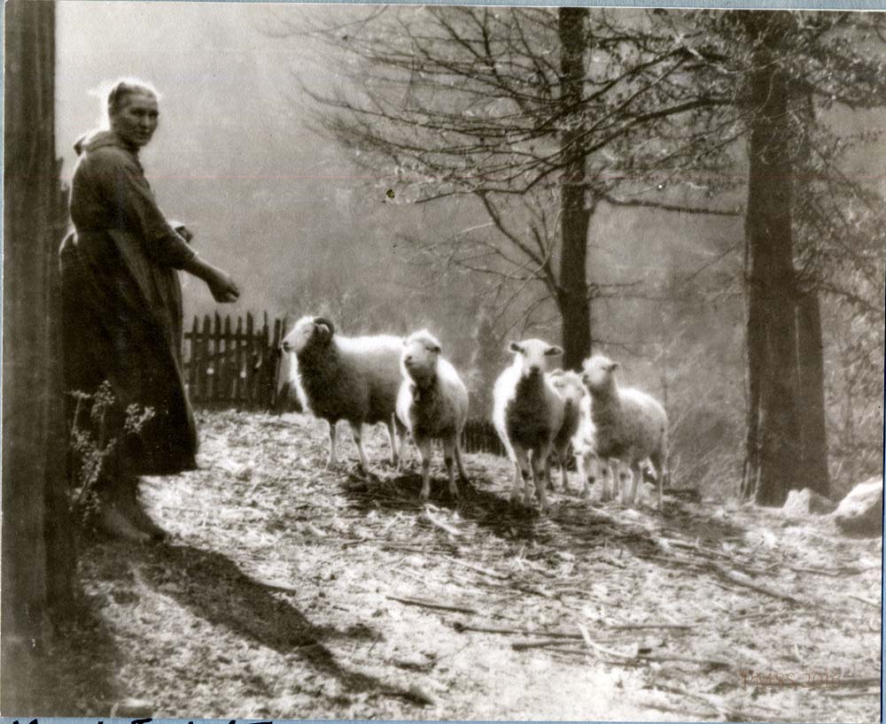 “‘Aunt Jude’ Turner, Big Laurel, about 1925” feeding sheep. [nace_II_album_008.jpg]