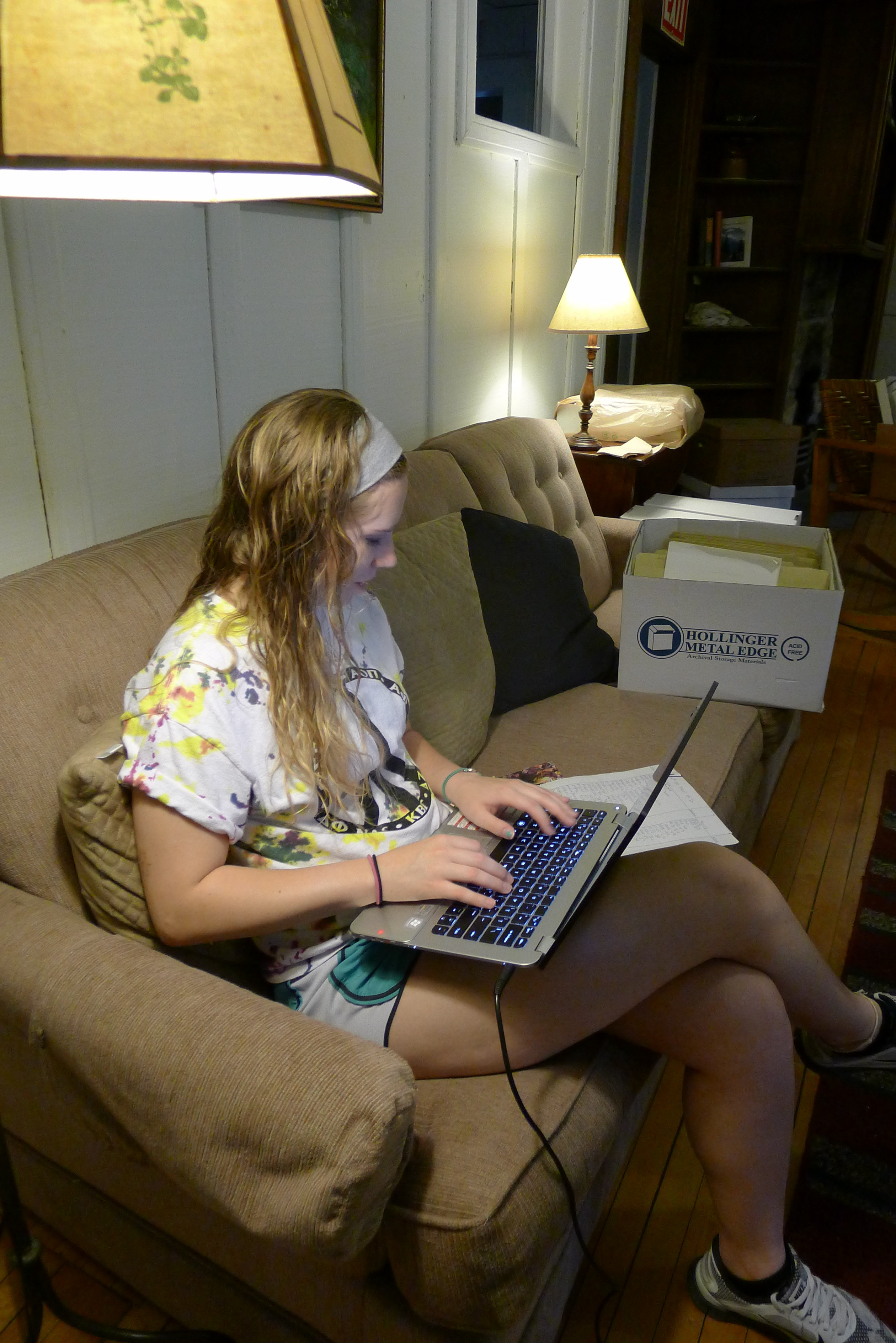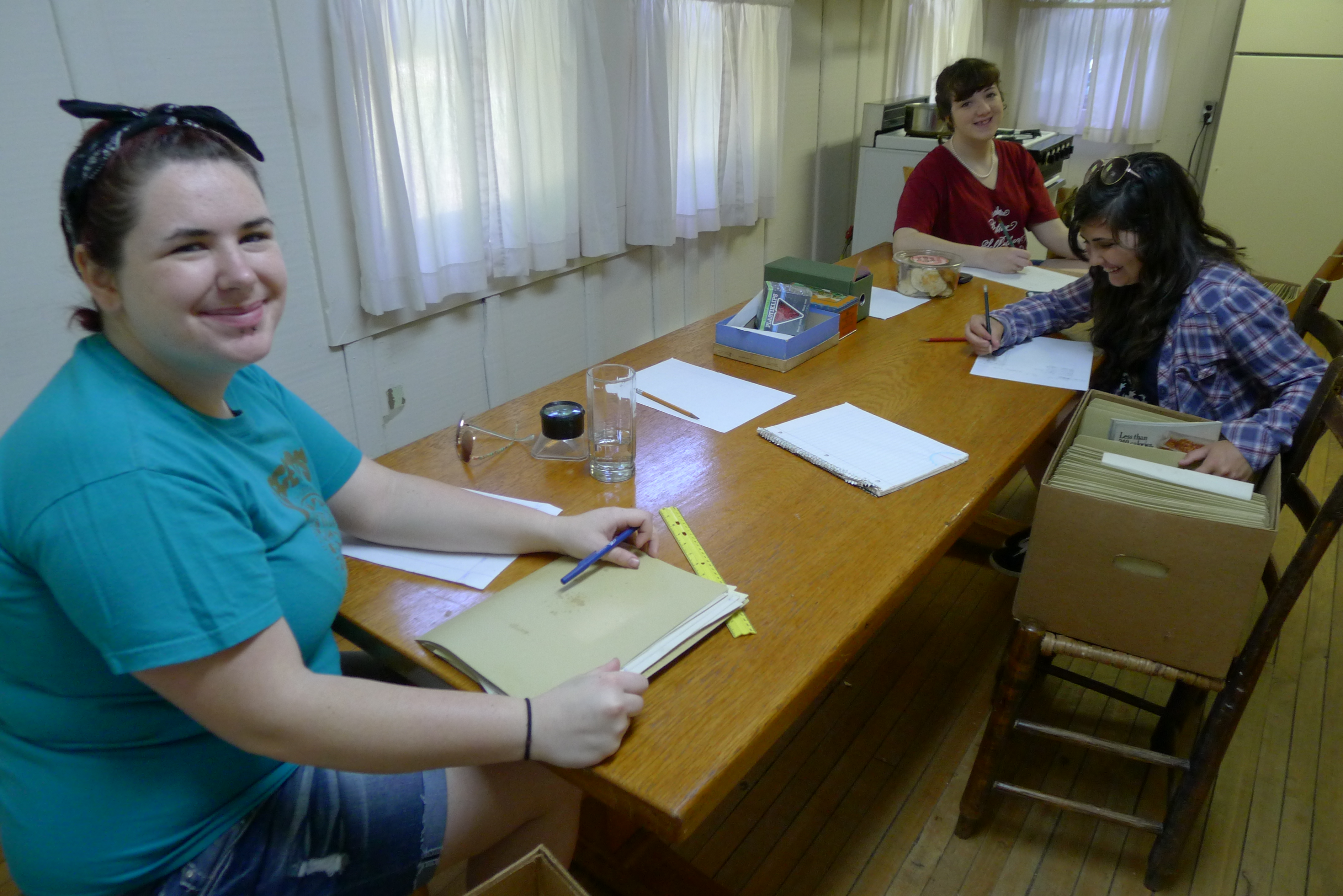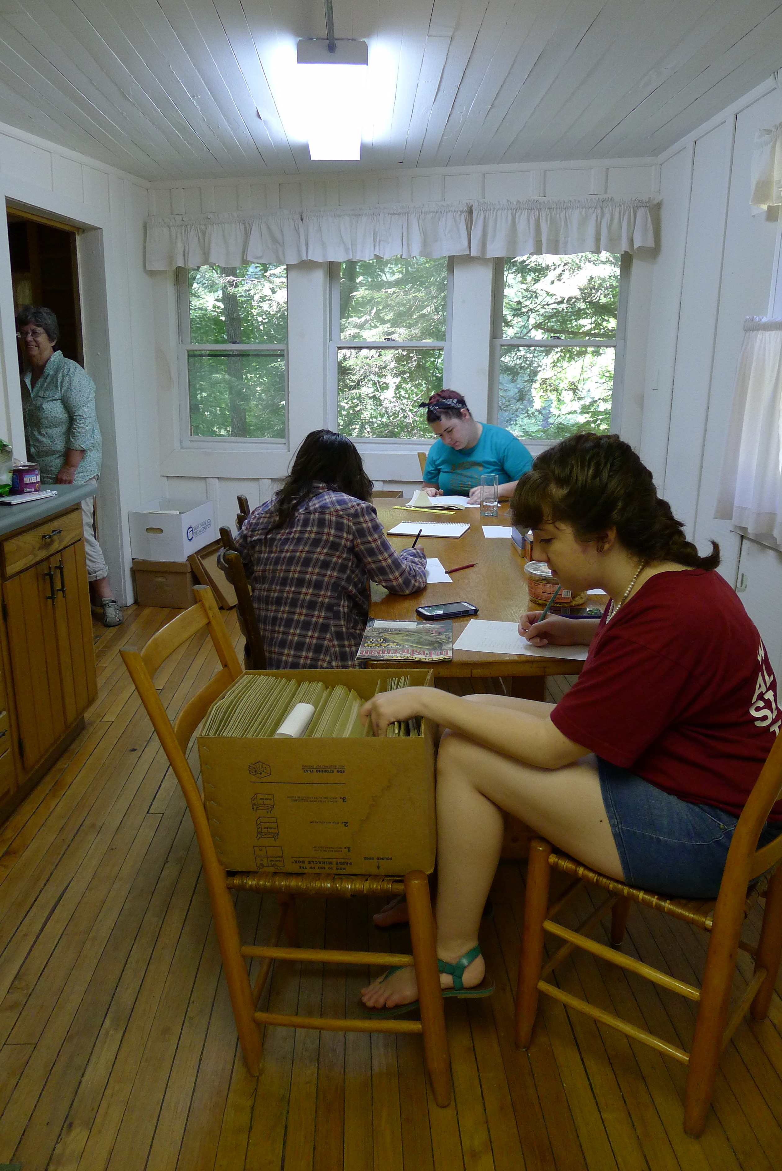 James Madison University crew hard at work on archives at West Wind. Scanning and data entry. [P1060793.jpg]