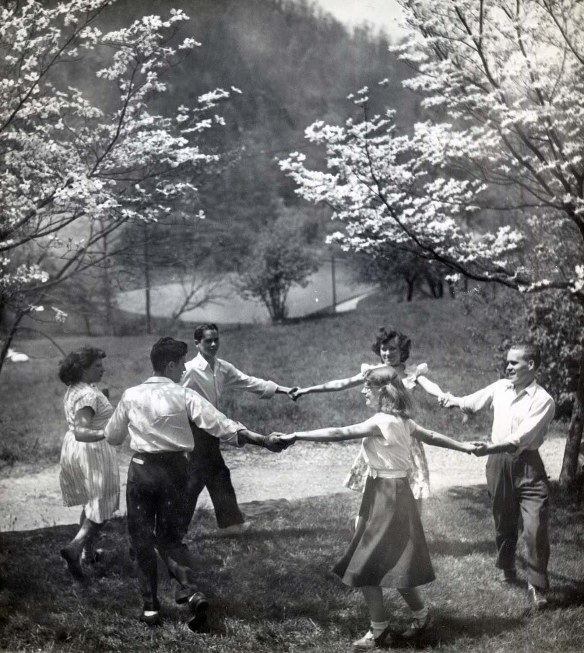 English Country Dance crept into the Pine Mountain Valley like the bright green of Spring time creeps up the North flank of the mountain — slowly. Dance in the valley was not unknown in the first decades of the twentieth century, but the gentility of English Country Dance was unknown. Anywhere there was a large community gathering in the mountains of Eastern Kentucky there were “parties” and “party games” and often “set-running.” Churches were largely opposed to “dancing” but “party games” were often accepted. In the more strict religious sects, dance had always been forbidden. Dancing was seen as the work of the devil, but so was moonshine, but never guns.