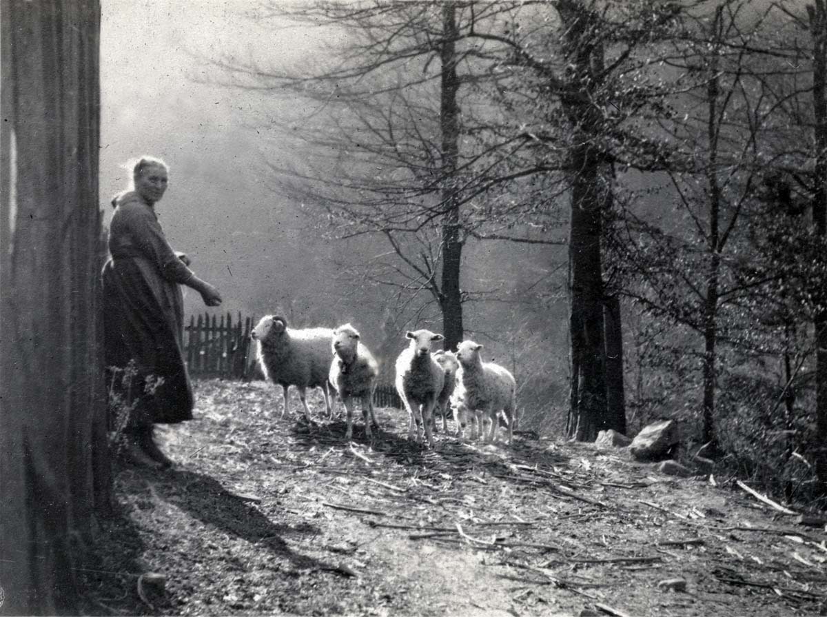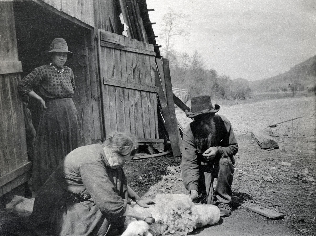 The photograph of Aunt Jude Turner feeding her sheep, seen above, is one of the most iconic photographs in the Pine Mountain Settlement School collections. Scattered throughout the early photographs taken at the School there are images of sheep, suggesting that they were an integral part of the landscape and life in the early years of the north side of the Pine Mountain. This image captures the essence of “romantic” sheep raising. But, was it all bucolic?