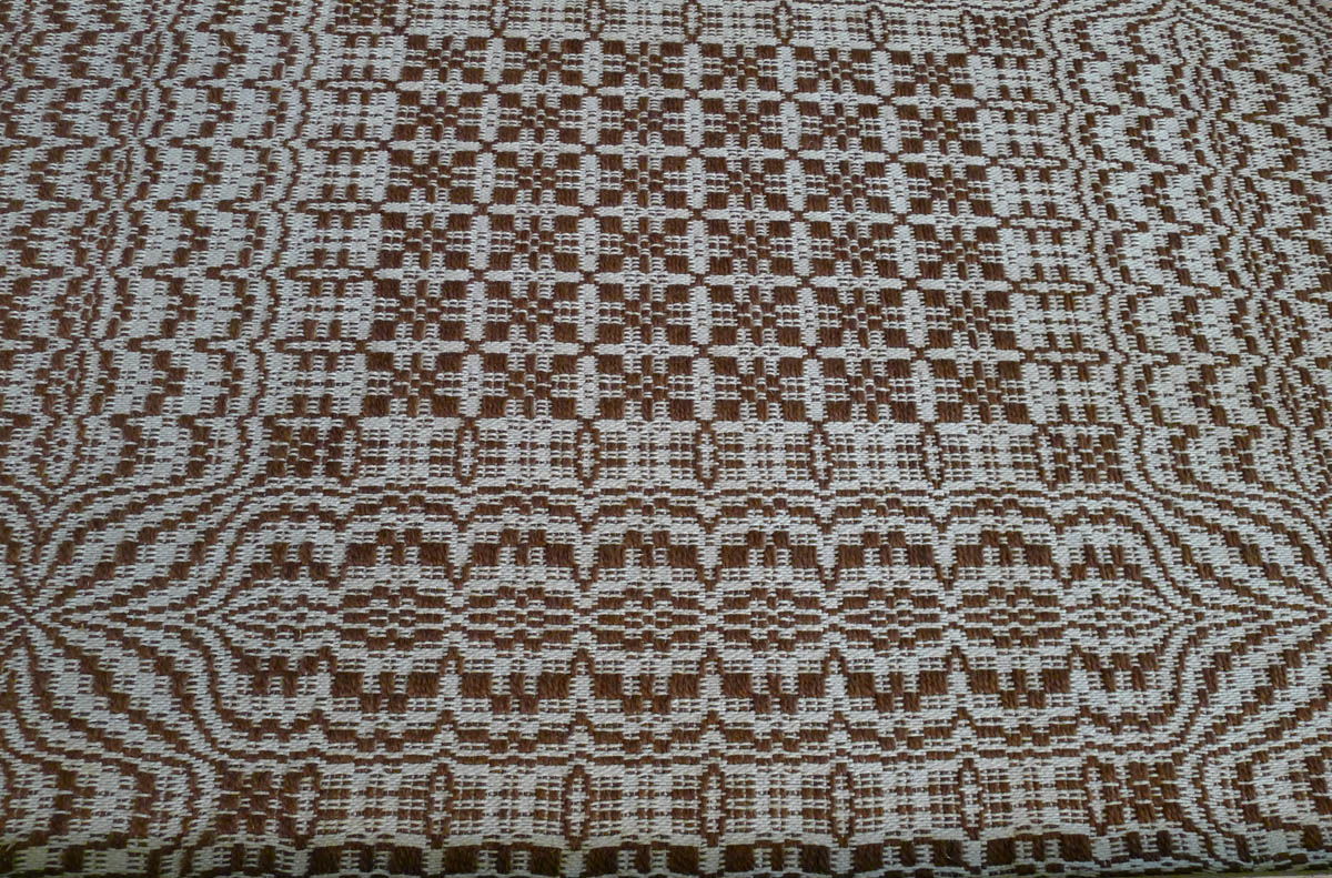 In her quest to understand the richness of the Central Appalachians, Pettit discovered “kivers” and they became focus of her collecting instincts. In a personal letter that Pettit wrote to a friend in 1911, she outlines her fascination with “kivers,” the woven bed covers, the products of many mountain looms. Generally woven of wool raised by the family, spun and then dyed with natural plants, these “kivers” or coverlets were prized possessions in the mountain families. Katherine Pettit had a passion for “kivers.” She certainly traveled miles to go see and seek her “kivers” but it soon became the “kivers” connection to the educational process of arriving at a “kiver” that held her attention and later her crusade. In instinct, she was a farmer in training and an educator before she was a collector.