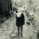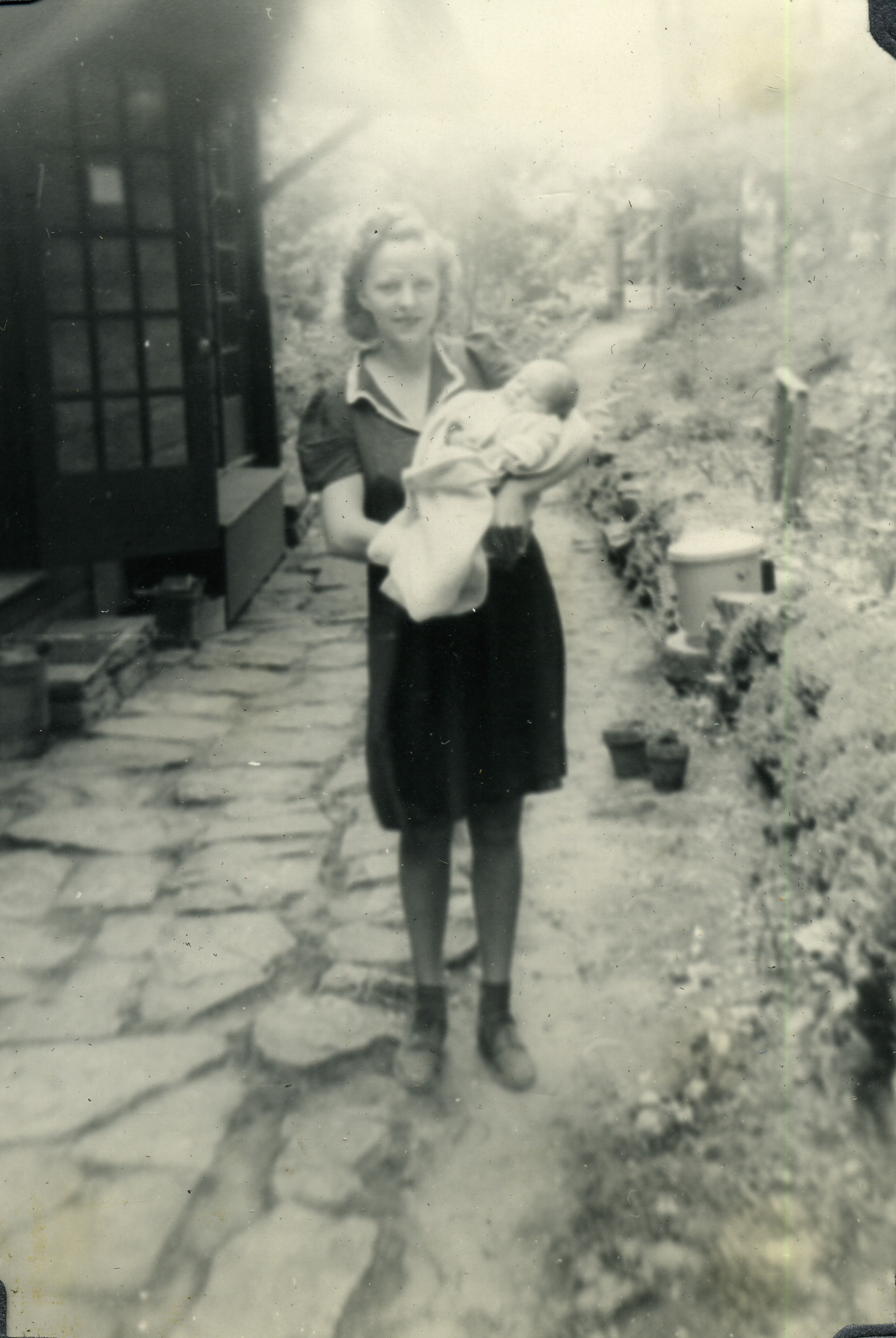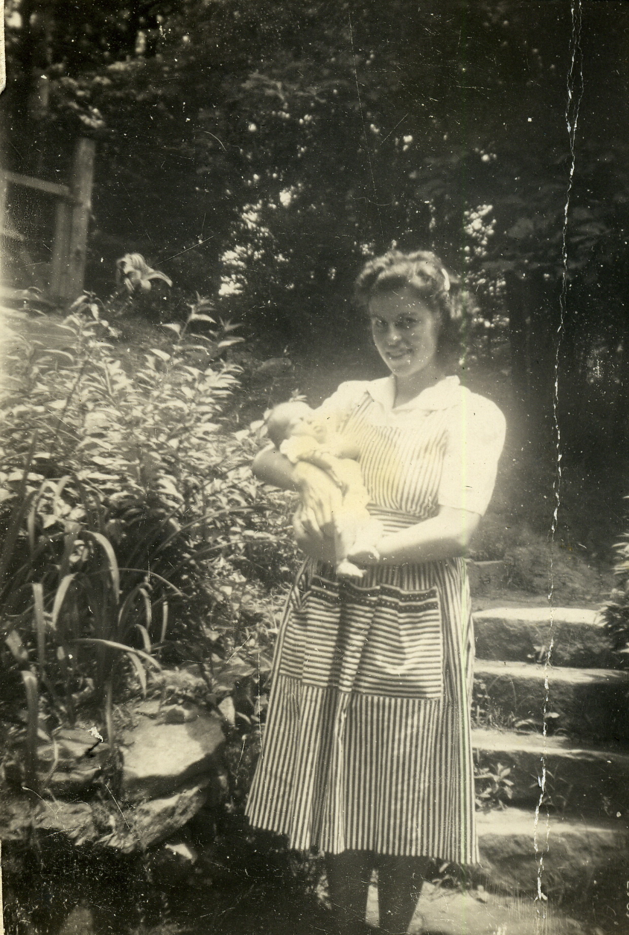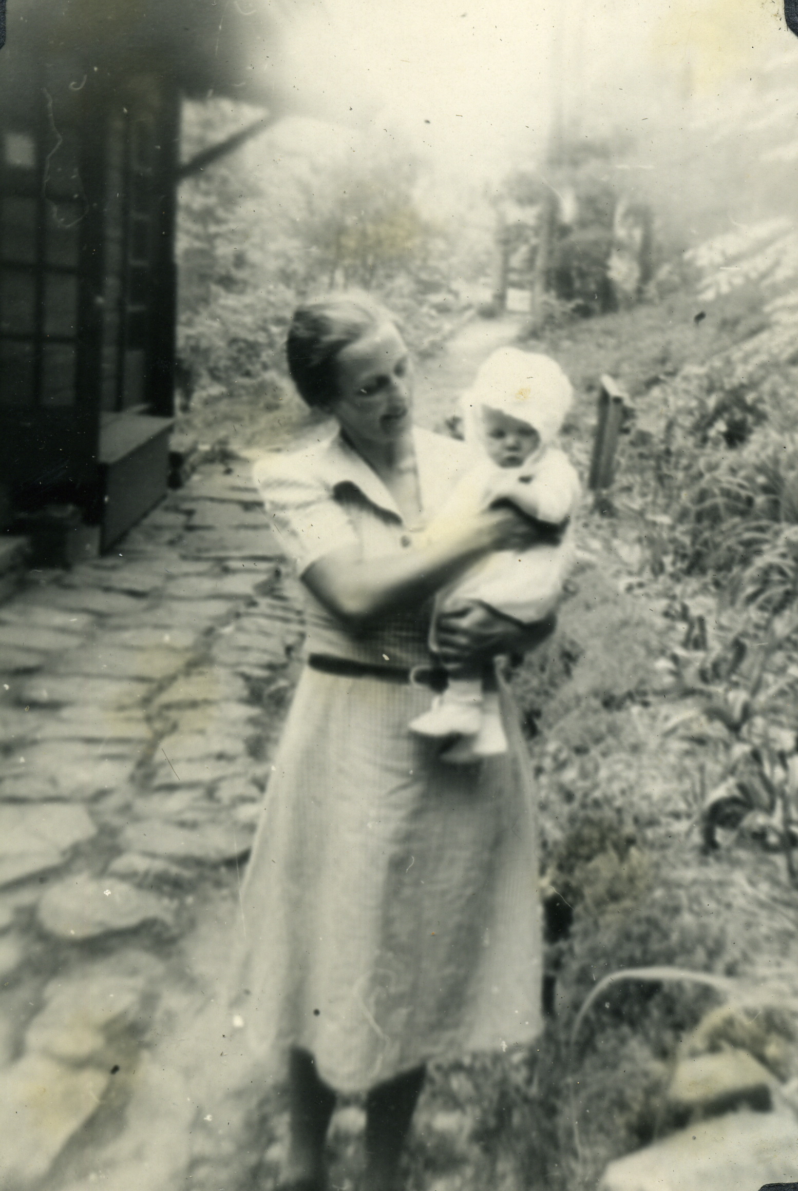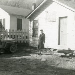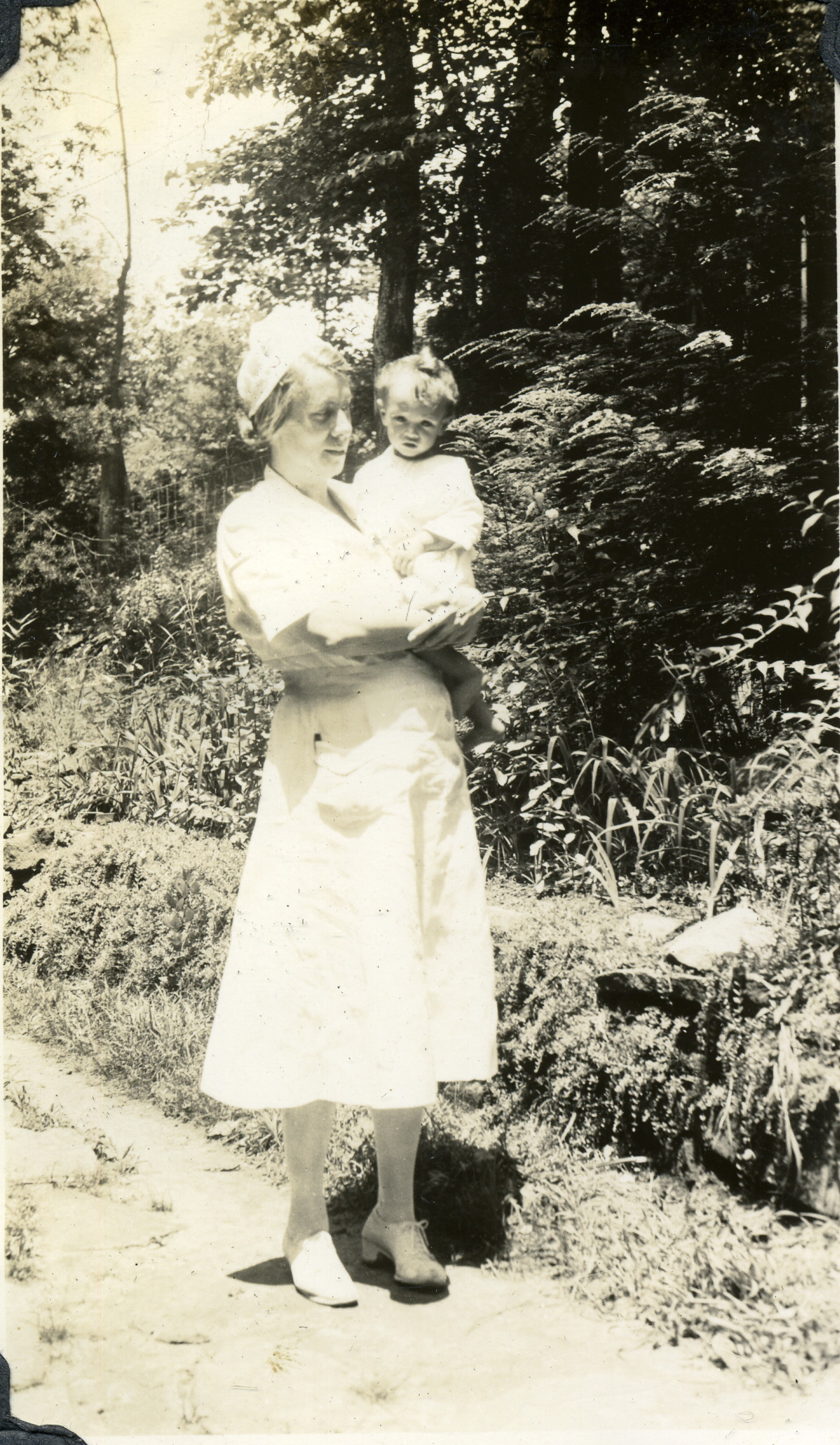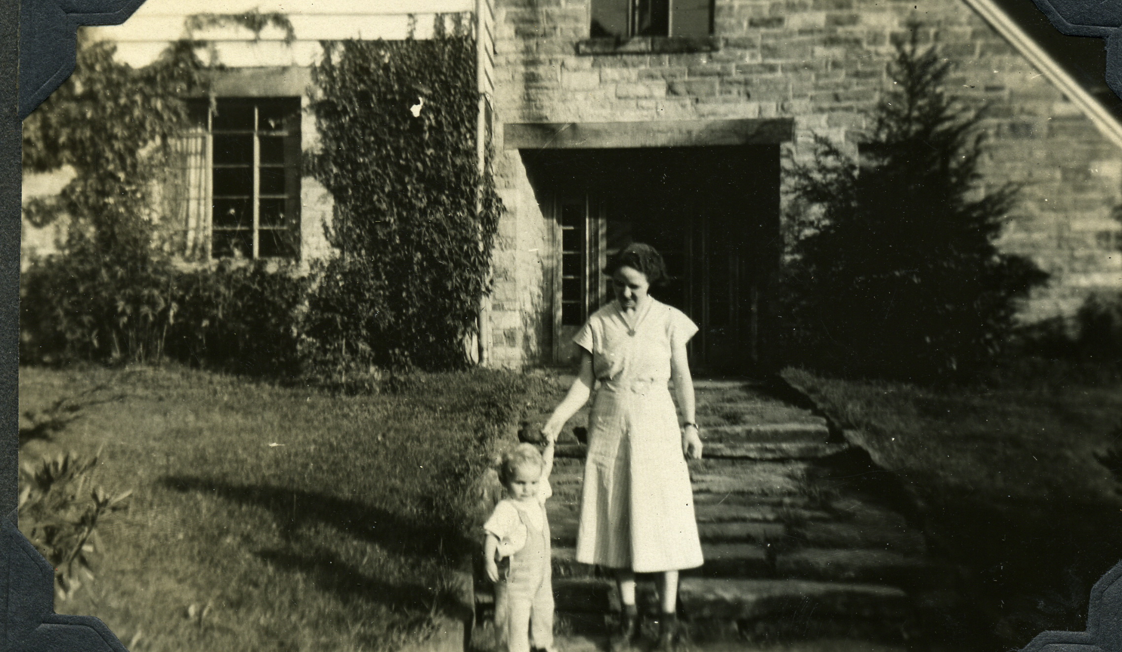 - Dr. Elizabeth Henderson and son, Harold, in front of Laurel House, c. 1946. Grace Rood Album. [rood_040.jpg]