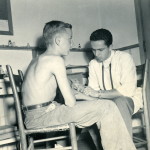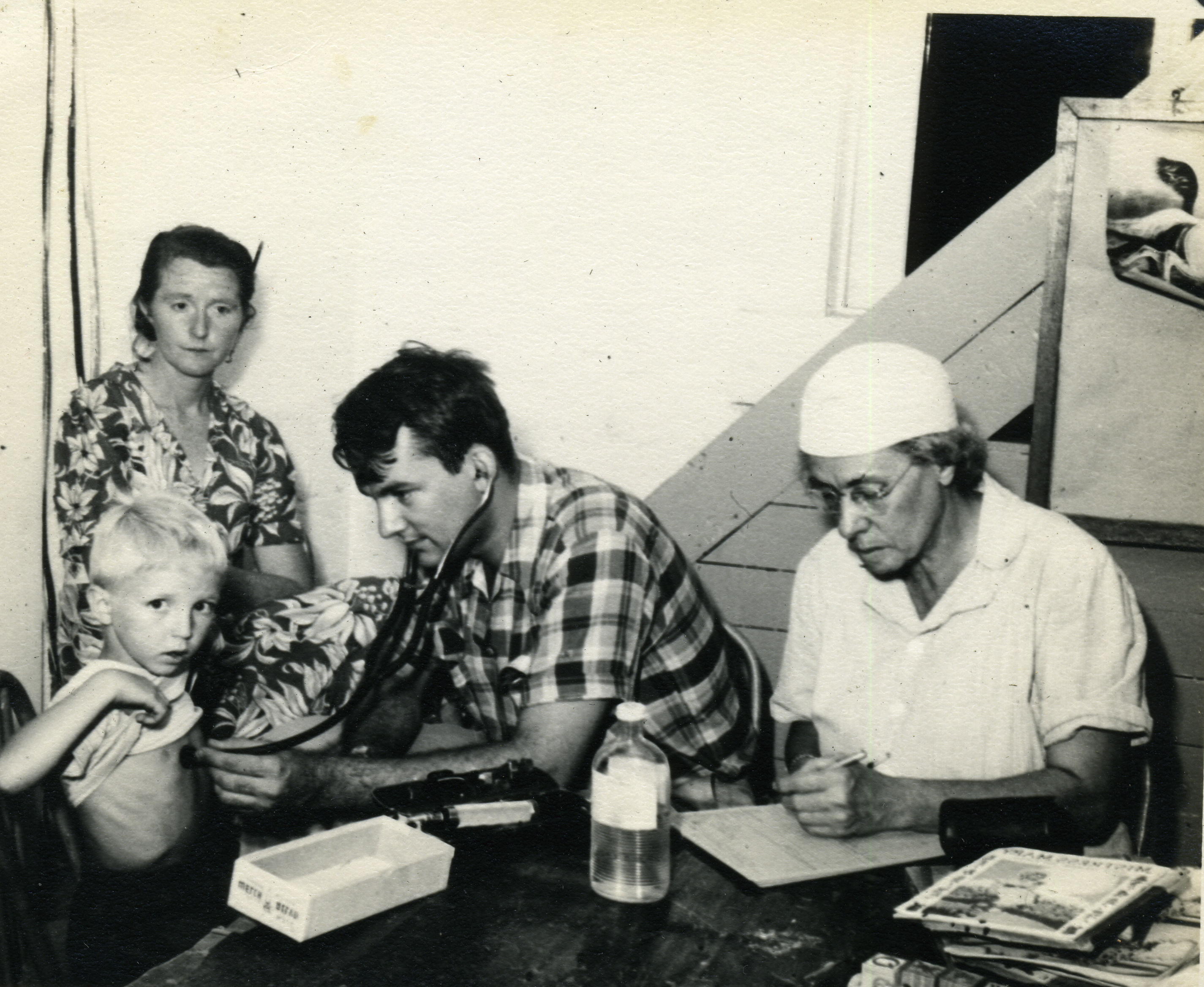 - Dr. Brown with shirtless young boy patient. Grace Rood Album.