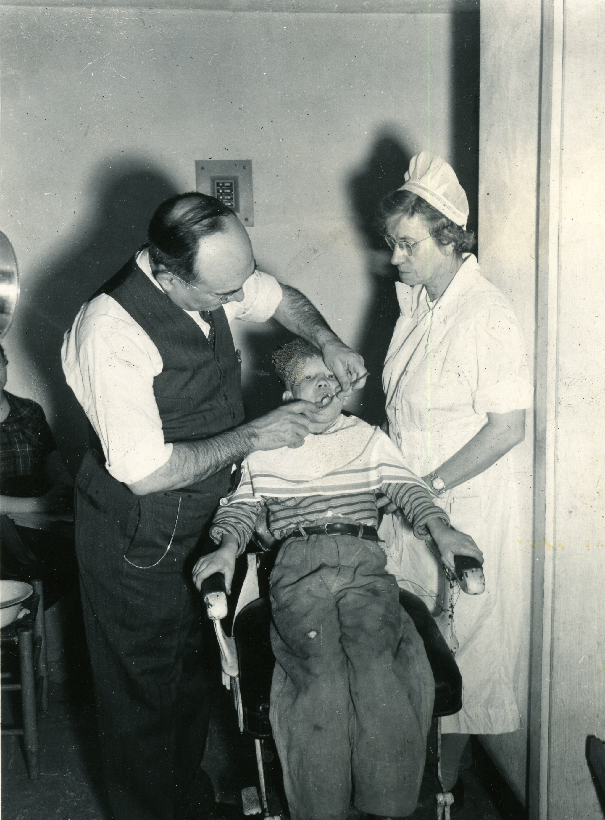 - Grace M. Rood (rt), dental patient (center) and dentist. Grace Rood Album. [rood_044,jpg]