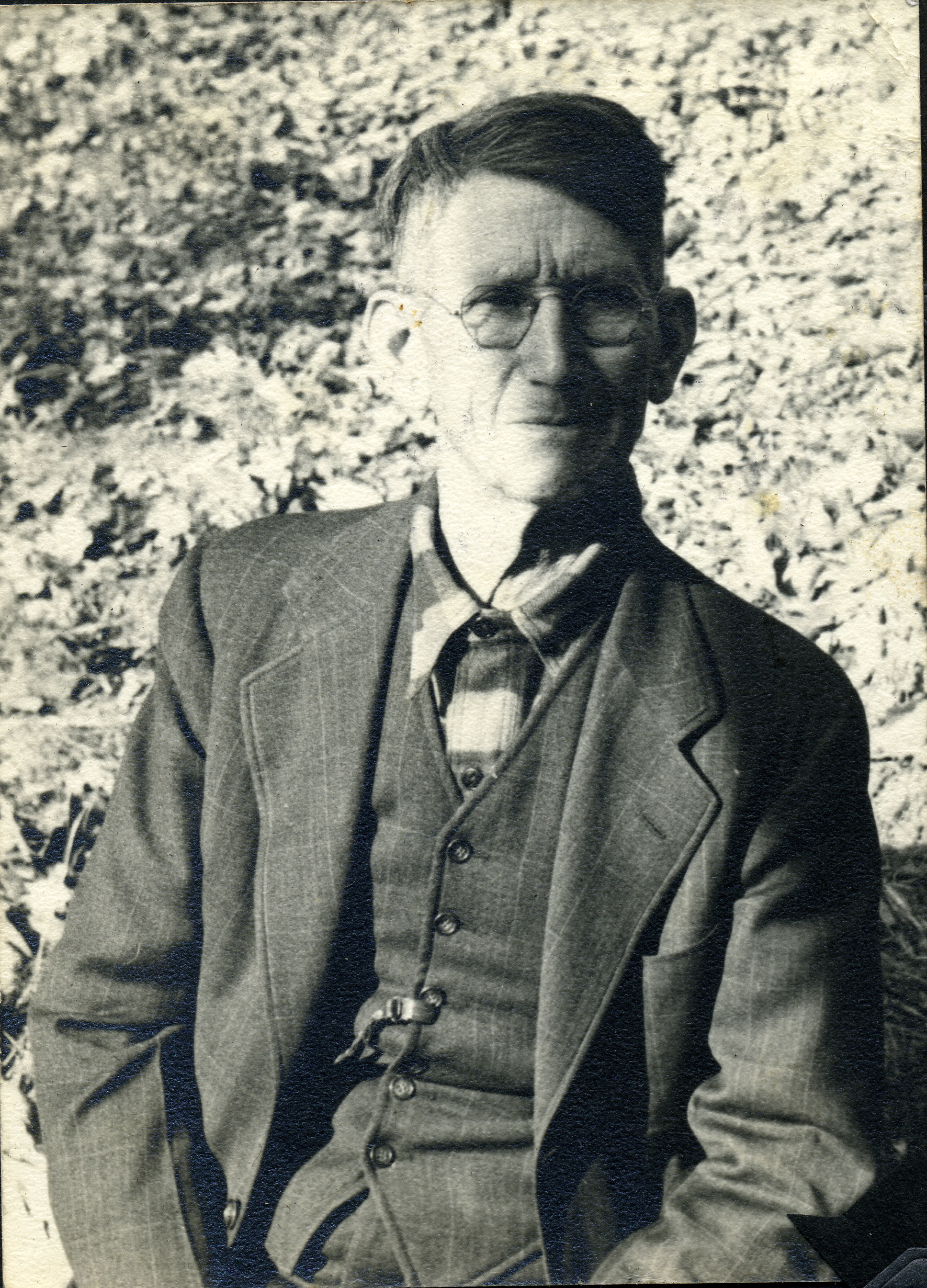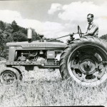- William Hayes, farmer at PMSS on school Farmall tractor. Grace Rood Album.