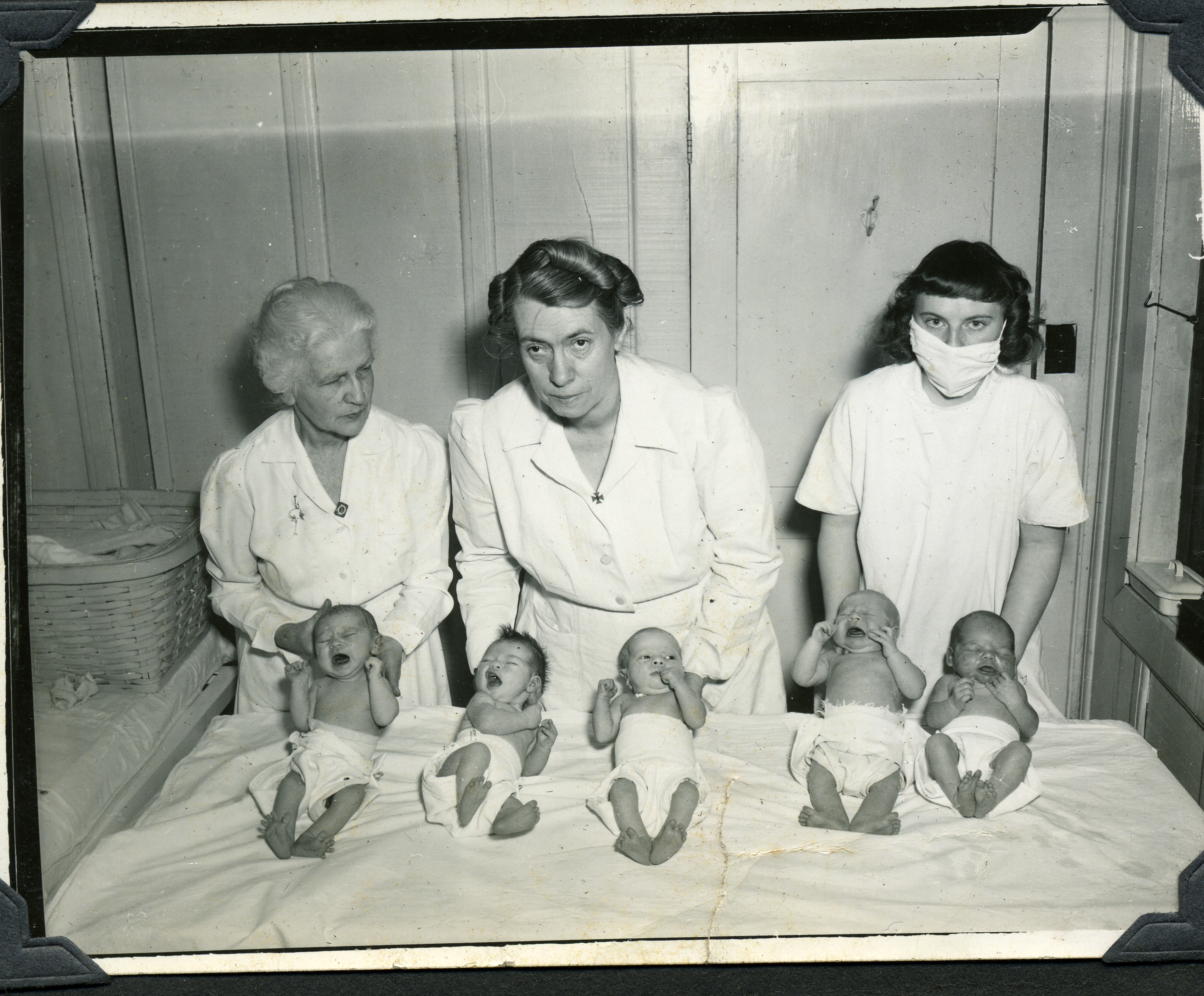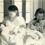 - Grace Rood and three babies (left), Dr. Emma Tucker with two babies, (center), and other nurse with two babies (rt) Grace Rood Album.
