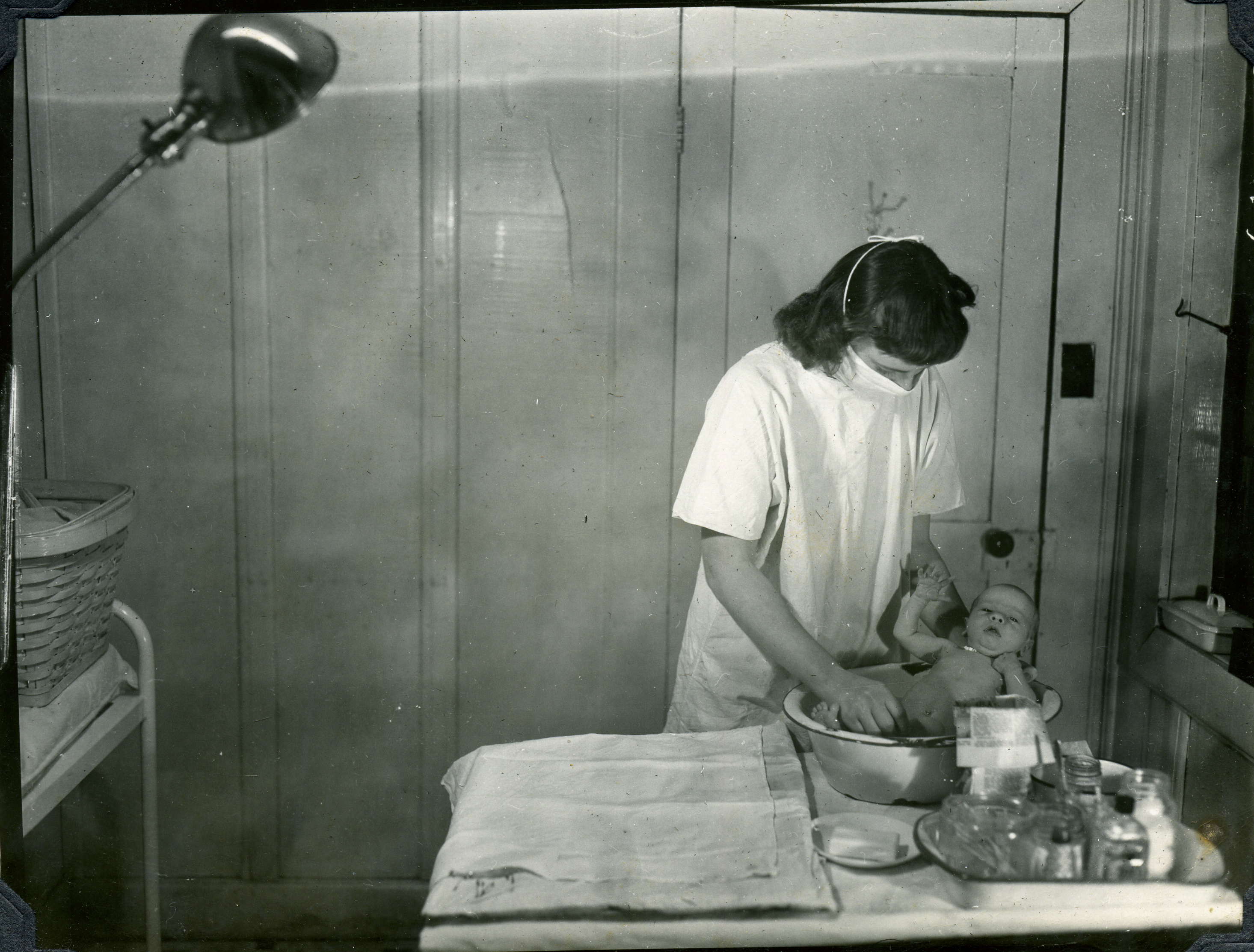 - Bathing baby at infirmary. Grace Rood Album.