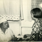 - Grace M. Rood (back to camera) at Laurel House II dining hall. Grace Rood Album. [rood_043.jpg]
