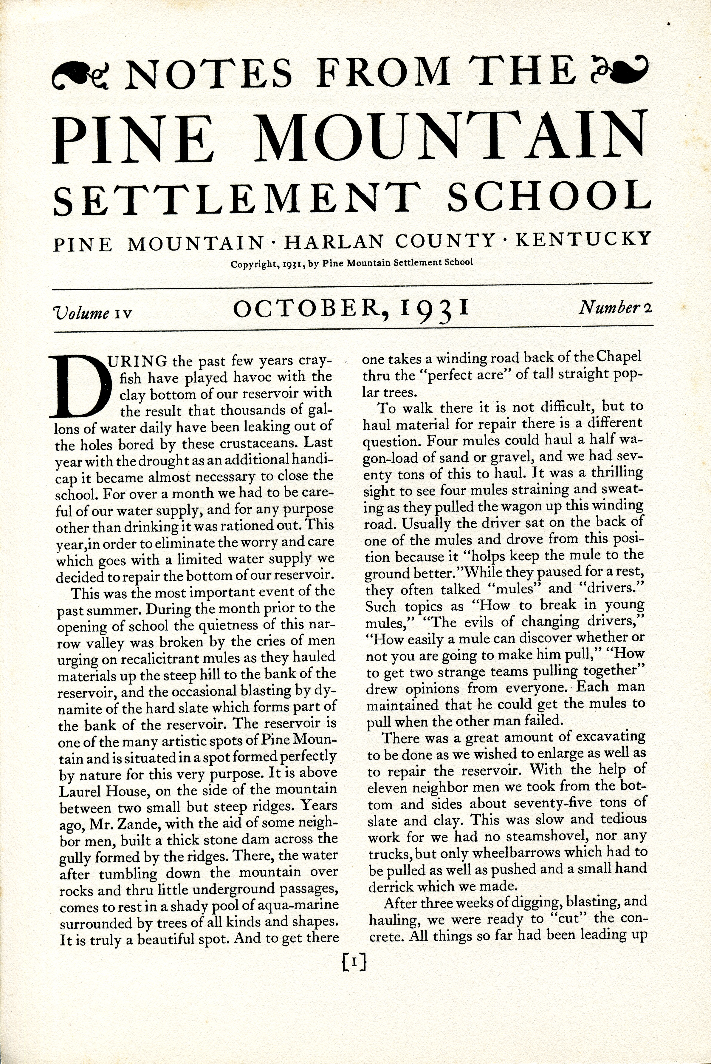 NOTES – 1931 OCTOBER: crayfish ; reservoir repair ; drought ; Mr. Zande ; Wisconsin Steel Company ; garden crops ; opening day ; Open House ; schoolhouse ; party night ; curriculum ; agriculture courses ; Denmark ; Mr. Moller ; cooperatives ; ambulance squad ; vesper service ; Bible courses ; Sunday service ; Line Fork Settlement ; Labor Day picnic ; Mr. Staplemanfinancial statement ;