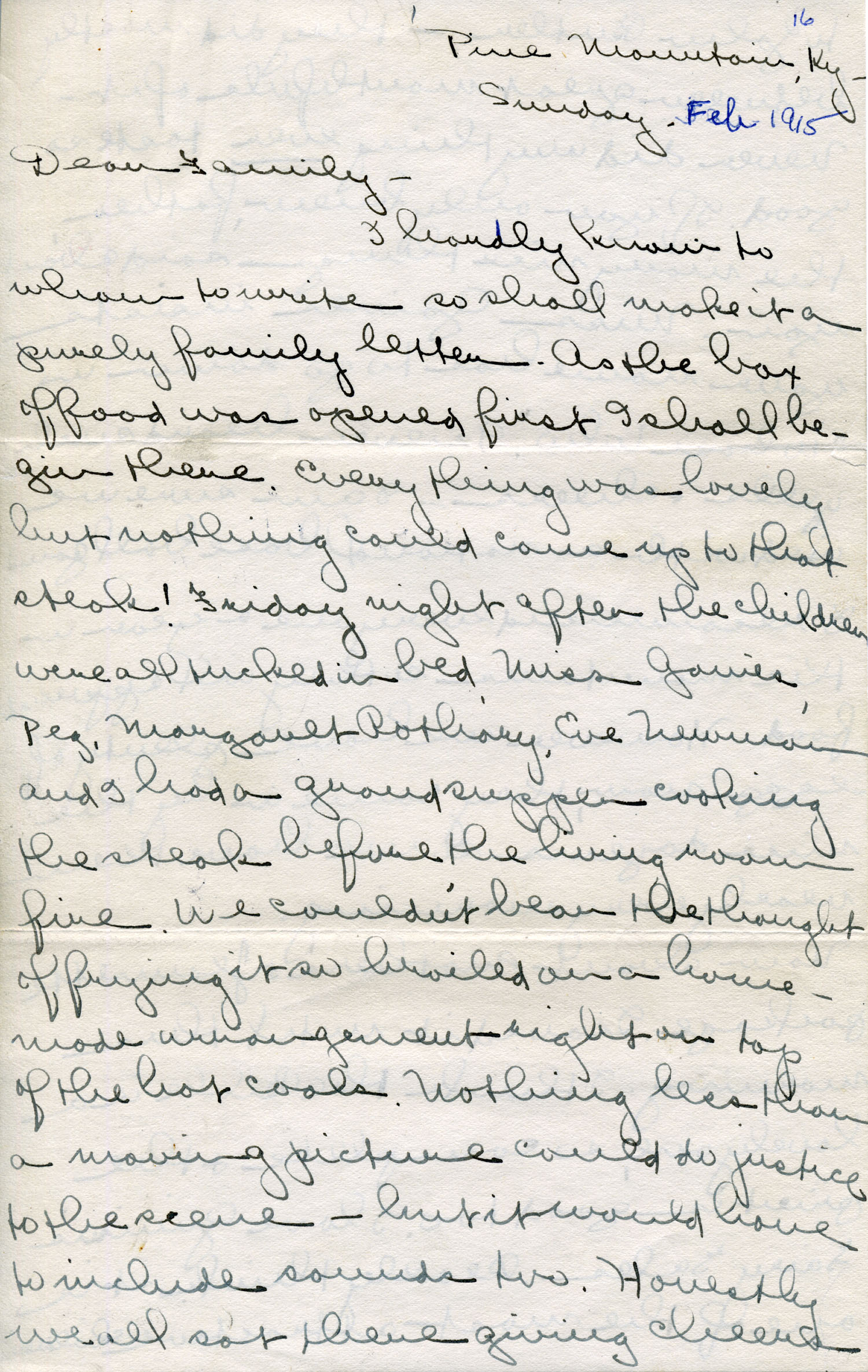 LETTER 3 Pine Mountain, KY, Sunday (Feb. 1915)