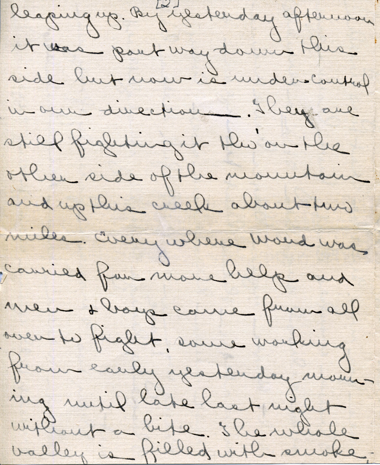 Forest fires ; going over boxes ; accident to boy ; $10,000 lumber damaged by fire ; school supplies ; Wilson tells “lie” ; Pettit and Gaines at Convention of Southern Workers conference ; Francis falls on stile and hits her head ; Monroe goes for nurse ; plans trip home ;
