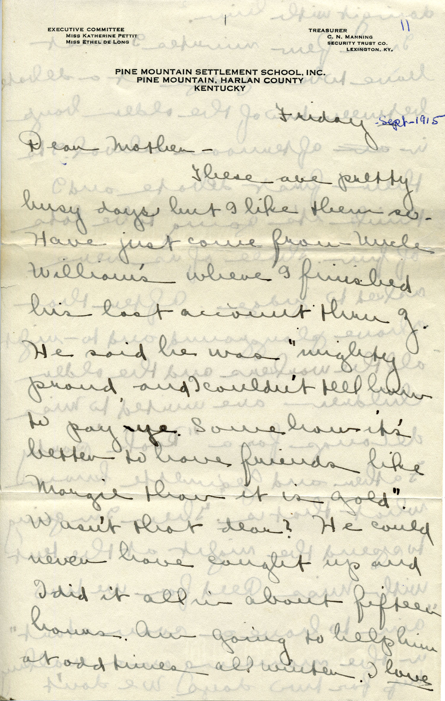 September, Friday, 1915 – “Dear Mother — These are pretty busy days, but I like them so….” [images 044-052]