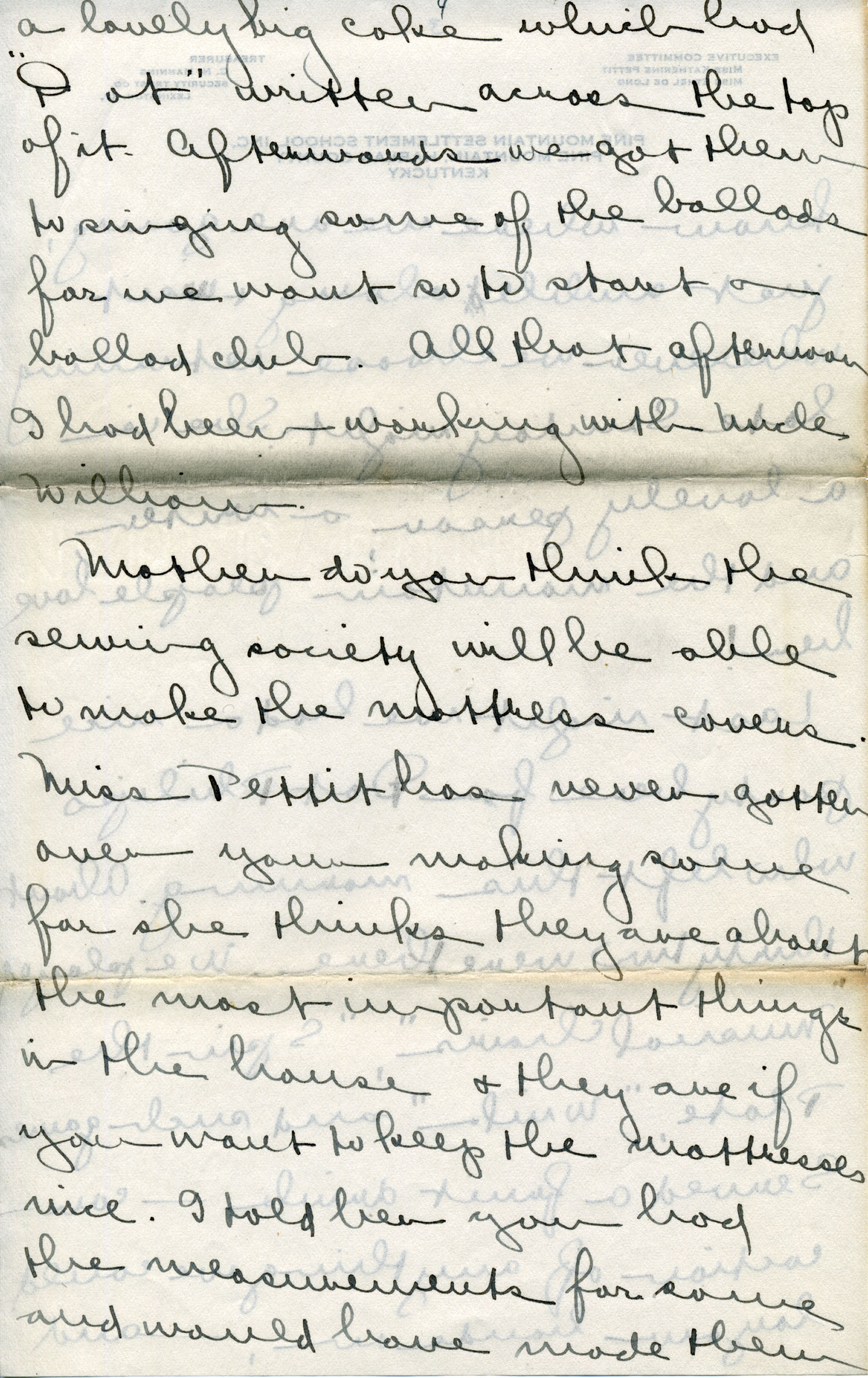 I must stop. R.B.G. [Ruth B. Gaines] and I are going to have supper and then play Ethel’s victrola. Don’t you think that wonderful for her to send. My! We’ll enjoy it.