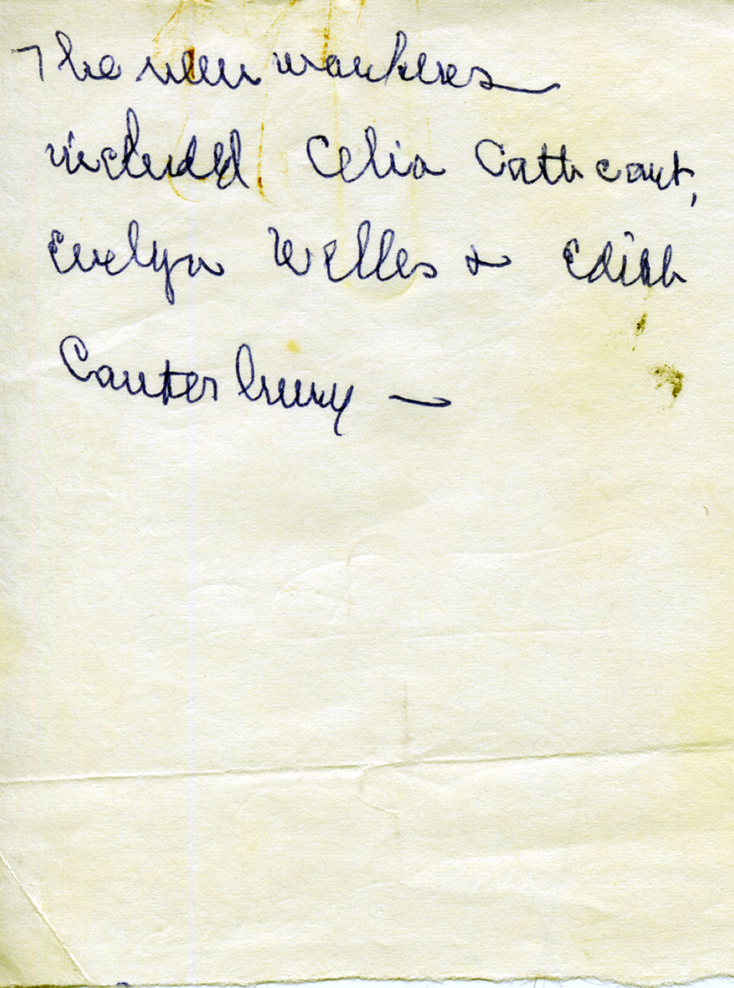 MBB note: “The new workers included Celia CathcartEvelyn Wells and Edith Canterbury….” [image 052]