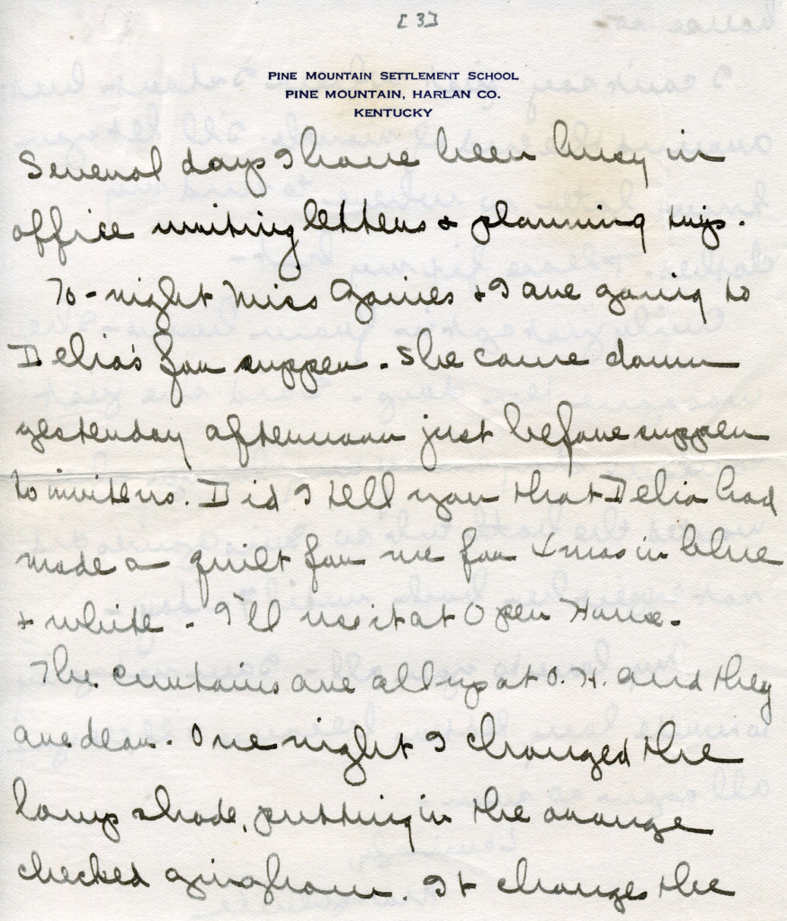 Mrs. Sharrow, Vice President of Girl Scouts, and Miss Coolidge from Cambridge were here for four days. Thursday they went to Line Fork, staying overnight as Girl Scouts are organized there. They loved it!