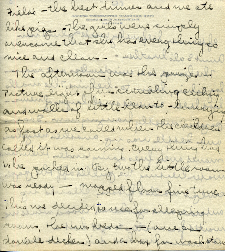 Dear Mother, It seems as tho’ I never have been away – really it was so natural it has taken no effort to get adjusted. Miss G[aines] met me at the spring and we had a lovely lunch. The ice cream came out beautifully. It was just 1:15 when I got to the spring and just supper time when we got to Laurel House. The children were dear — they came from all directions. Everyone says I’m so fat. The children look so well.