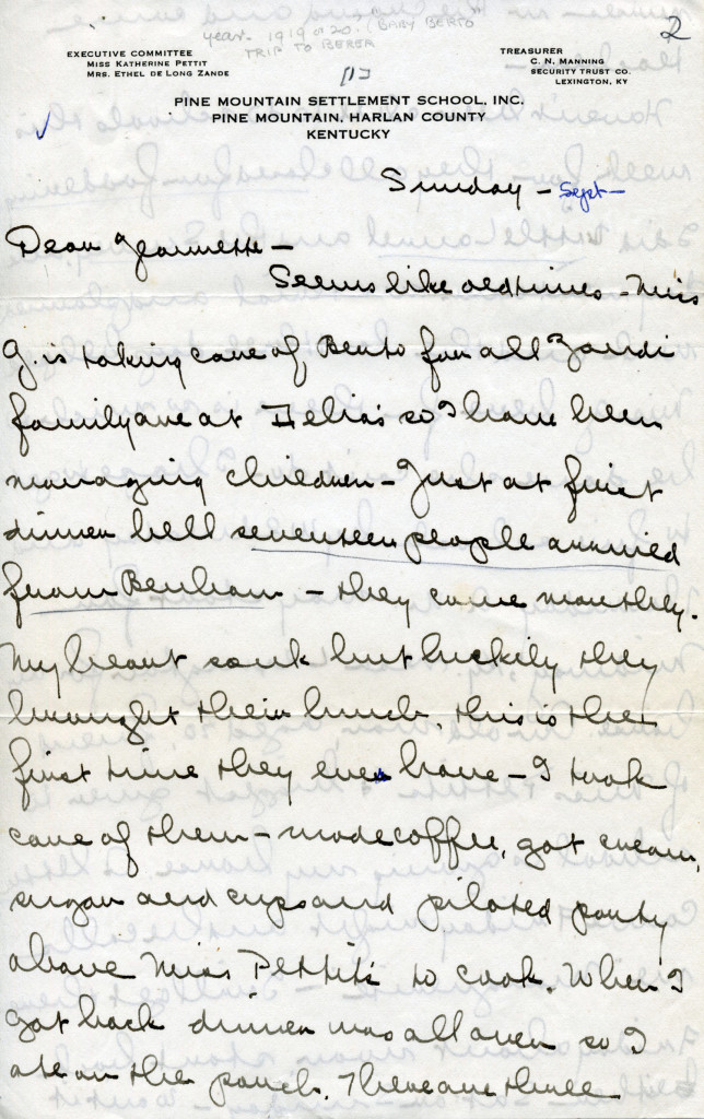 13. 1919 LETTER 13 – Sunday, September 1919 or 1920 (“Baby Berto,” trip to Berea) – “Dear Jeannette — Seems like old times. Miss G. is taking care of Berto for all Zandi [sic] family….” [images 072-077]
