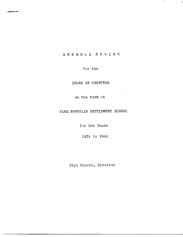 A summary by Glyn Morris of the ten years that he served as Director of Pine Mountain Settlement School for the review by the Board of Trustees.