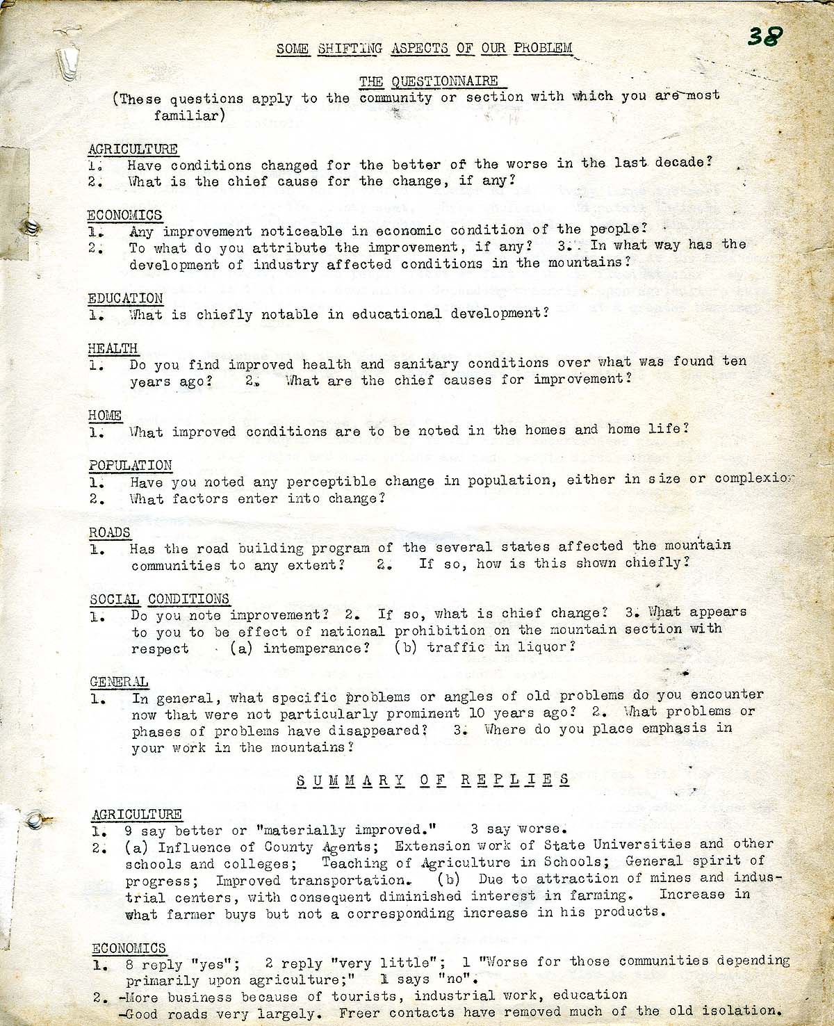 SCRAPBOOK BEFORE 1929: “Some Shifting Aspects of Our Problem” – The Questionnaire