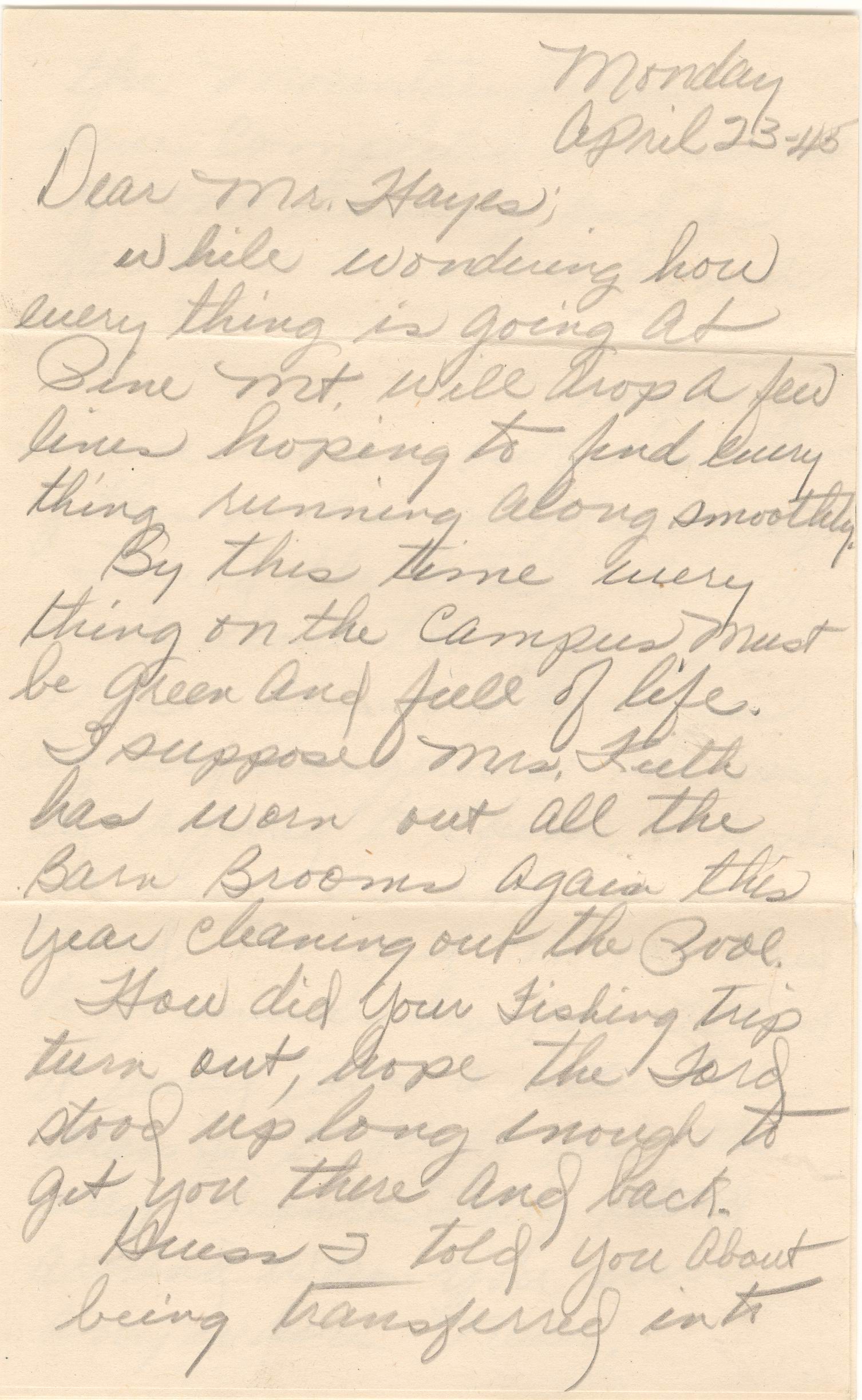 The letters also capture the difficult years of World War II and the pressure it placed on the School and on the families who had children attending Pine Mountain. It records the anxiety of young men going to war and the interruption in the educational processes for young men at the School as well as the interruption in their assistance of their families.