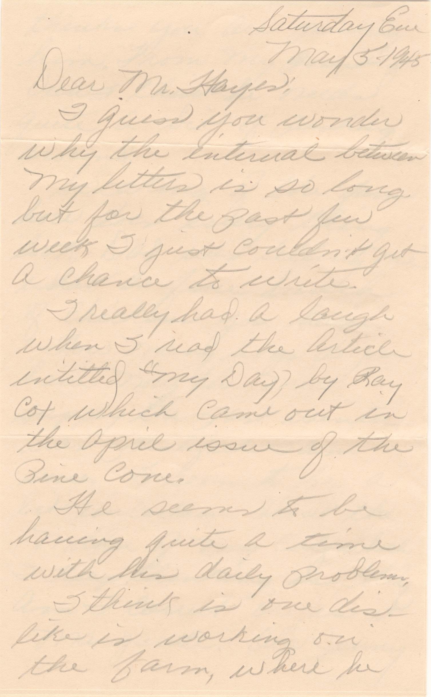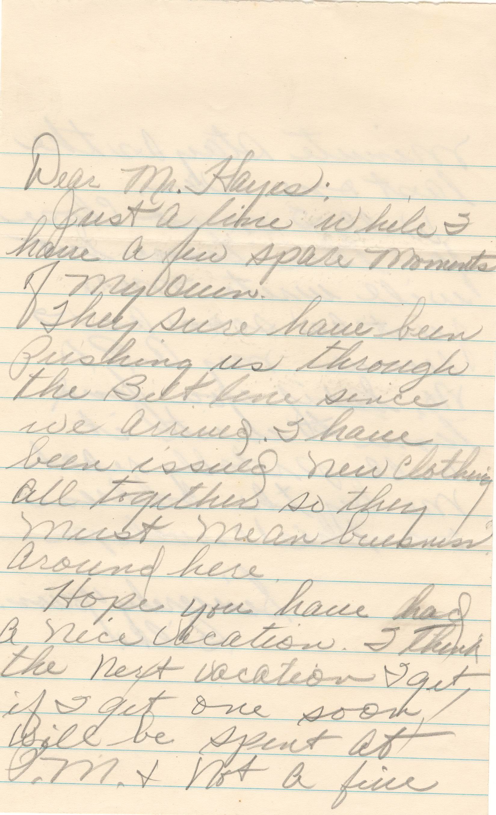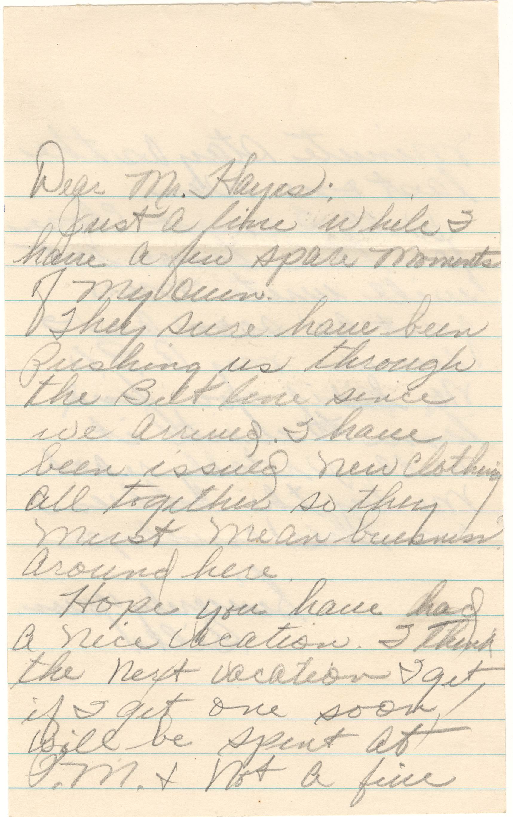 Well I must close for now and do some more writing. Tell Mrs. Hayes and the kids hello.
