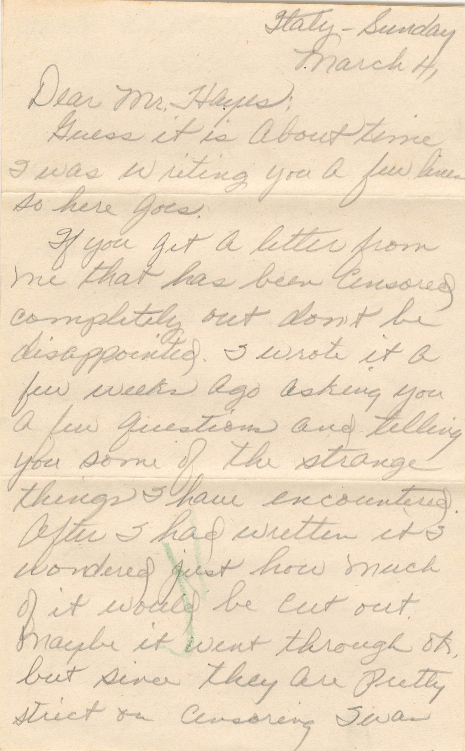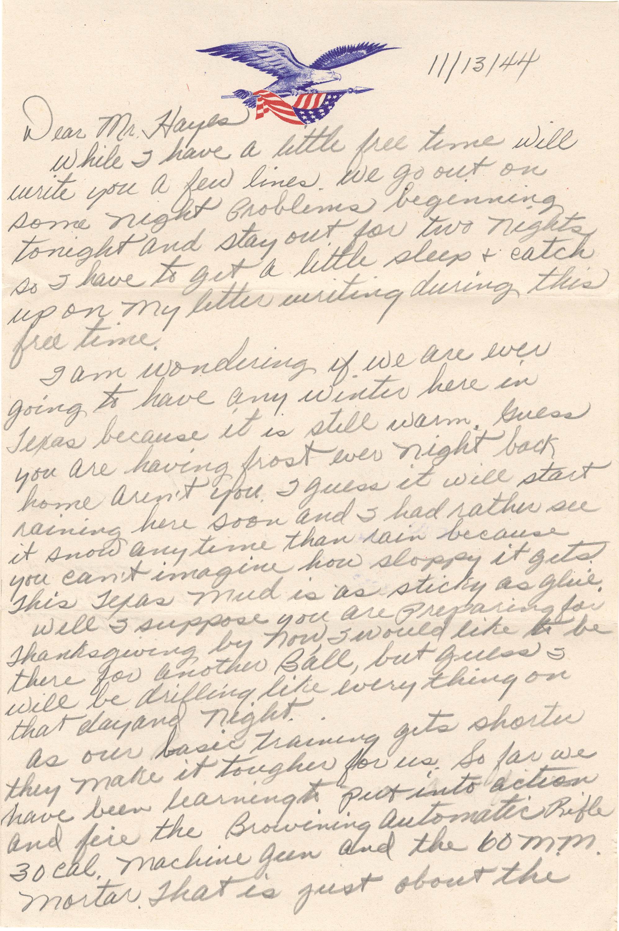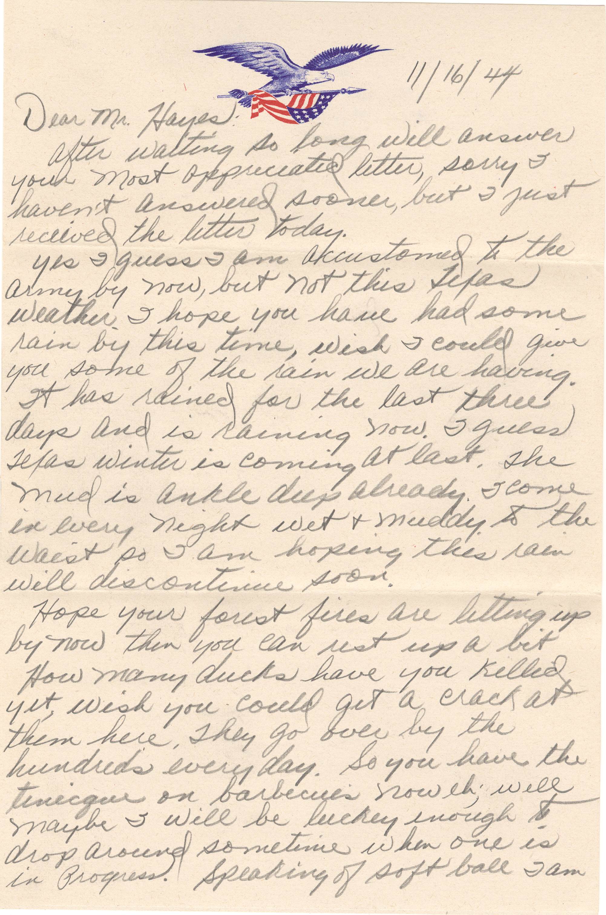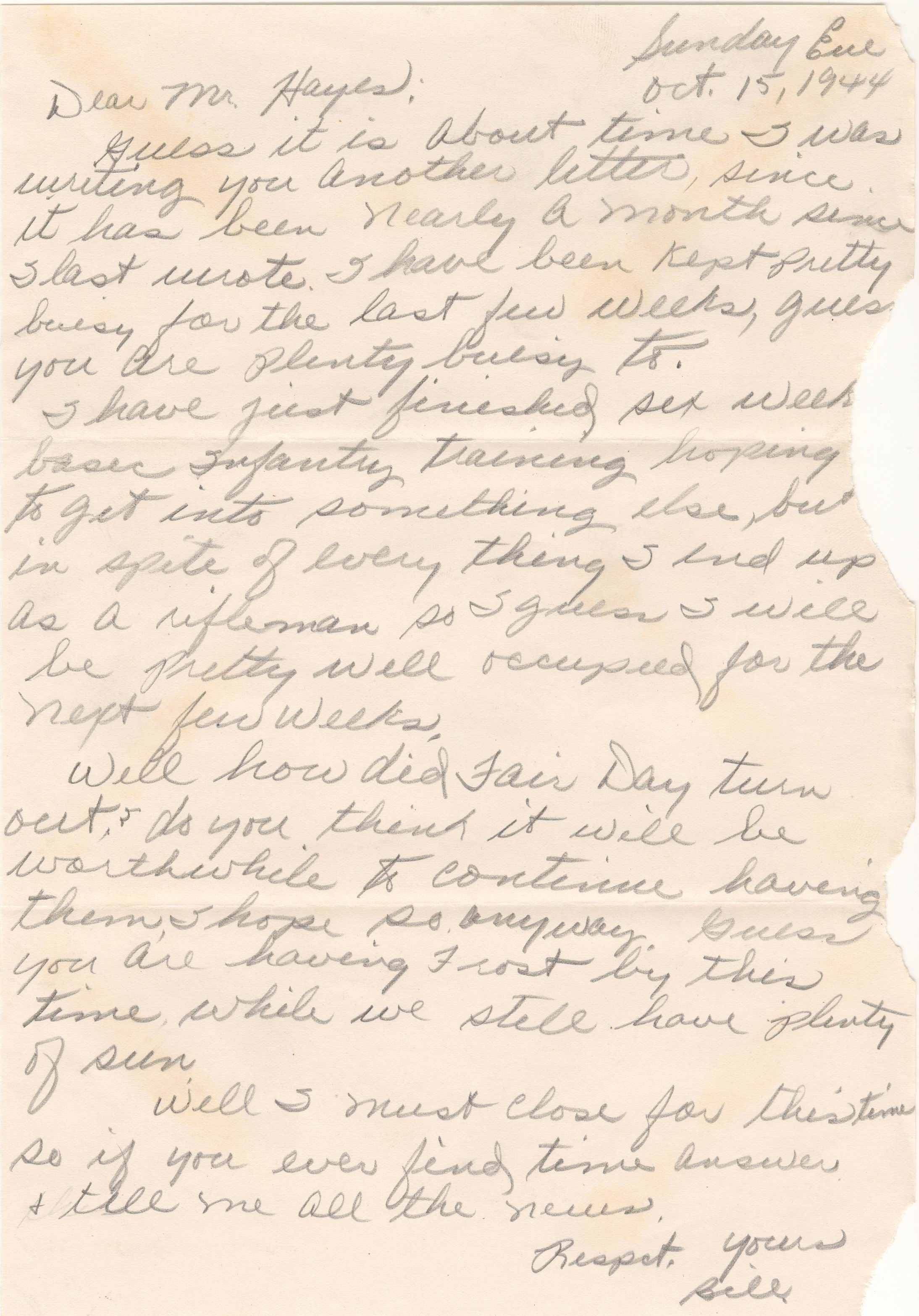 Well I must close for now and do some more writing. Tell Mrs. Hayes and the kids hello.