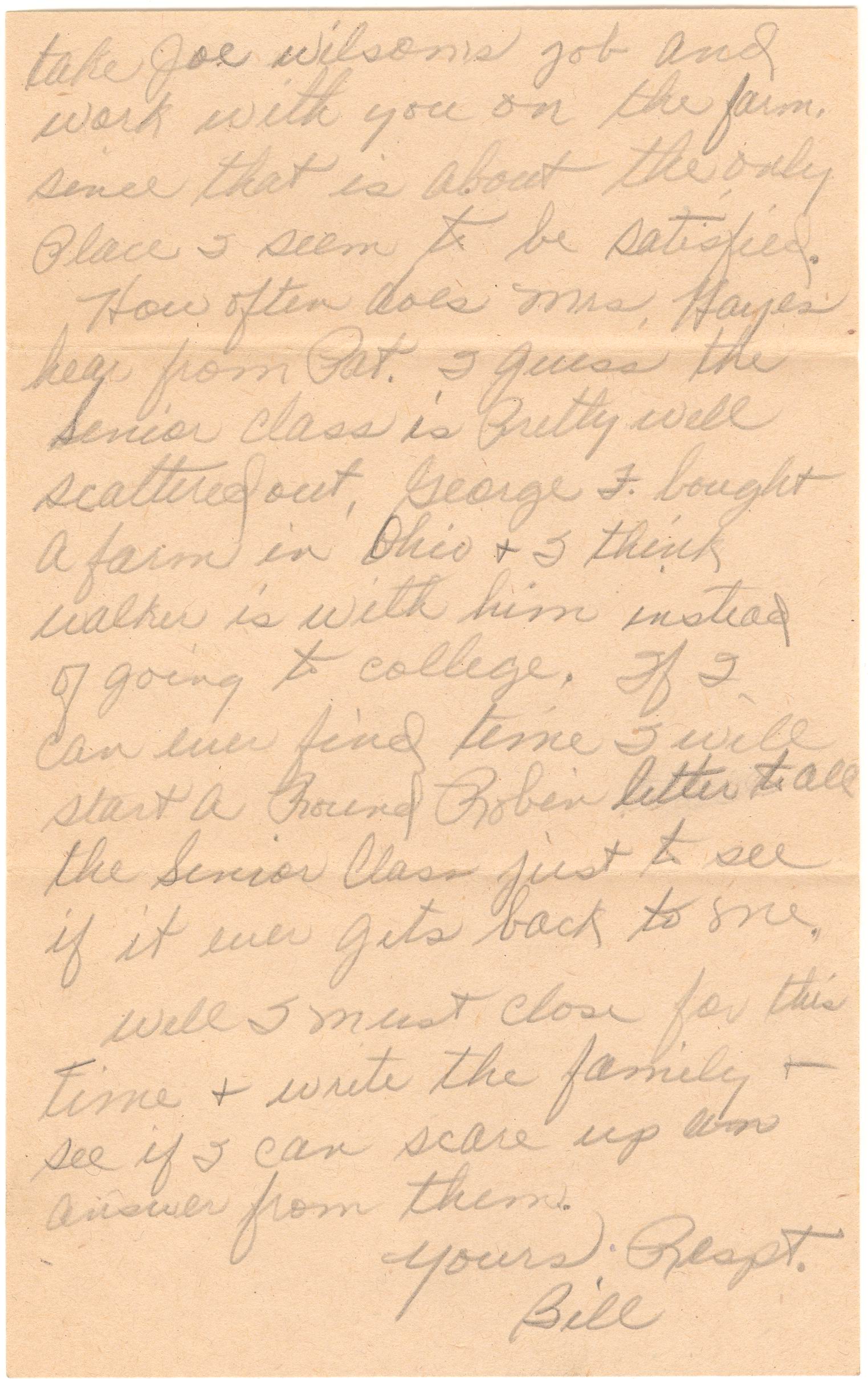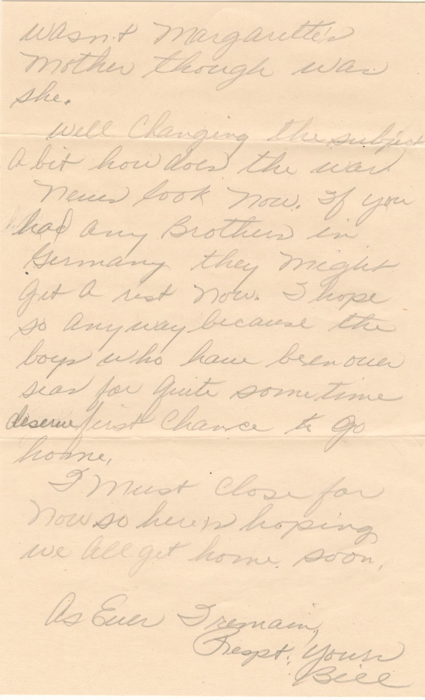 Well, Bill drop me a line to let me know about you & your family & every one. So until I see you good luck.