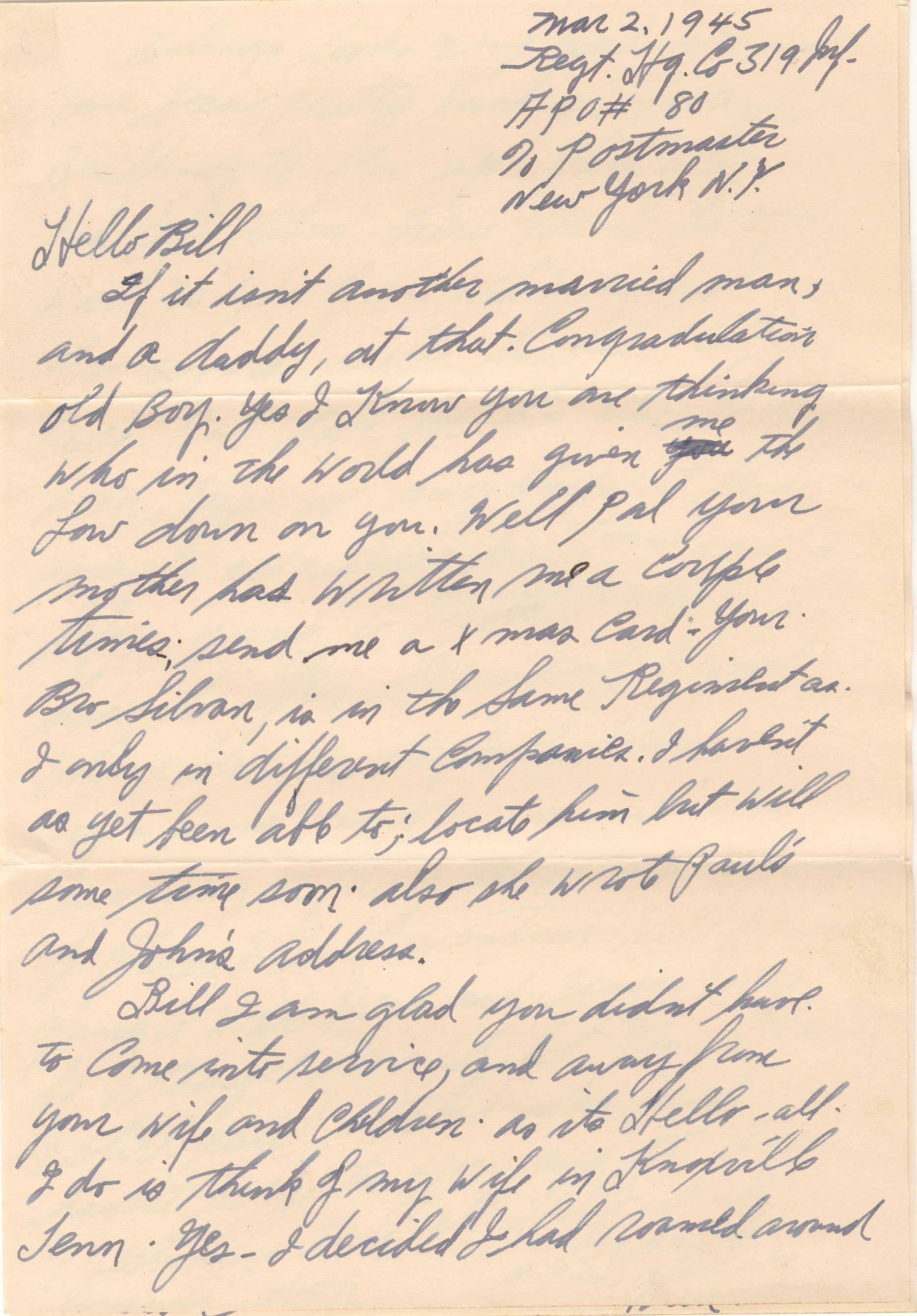 TRANSCRIPTION: BILL BLAIR WWII Letters