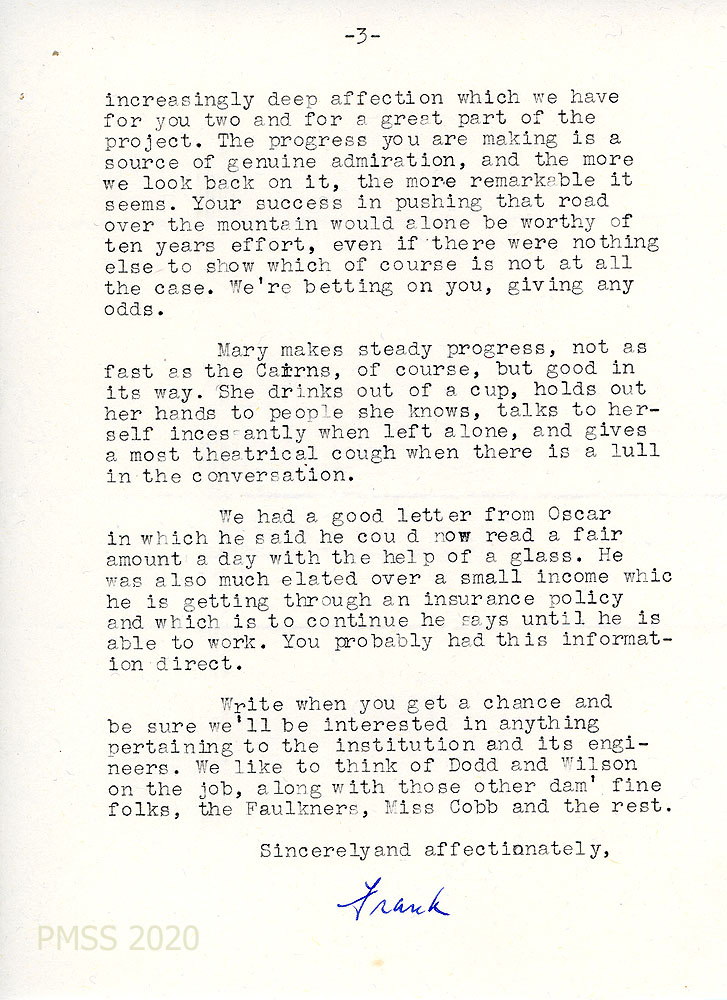 [Note: All letters from PMSS staff are carbon copies, typewritten, often unsigned, and meant for the Office files. All other letters are original and typewritten, except where noted otherwise.]